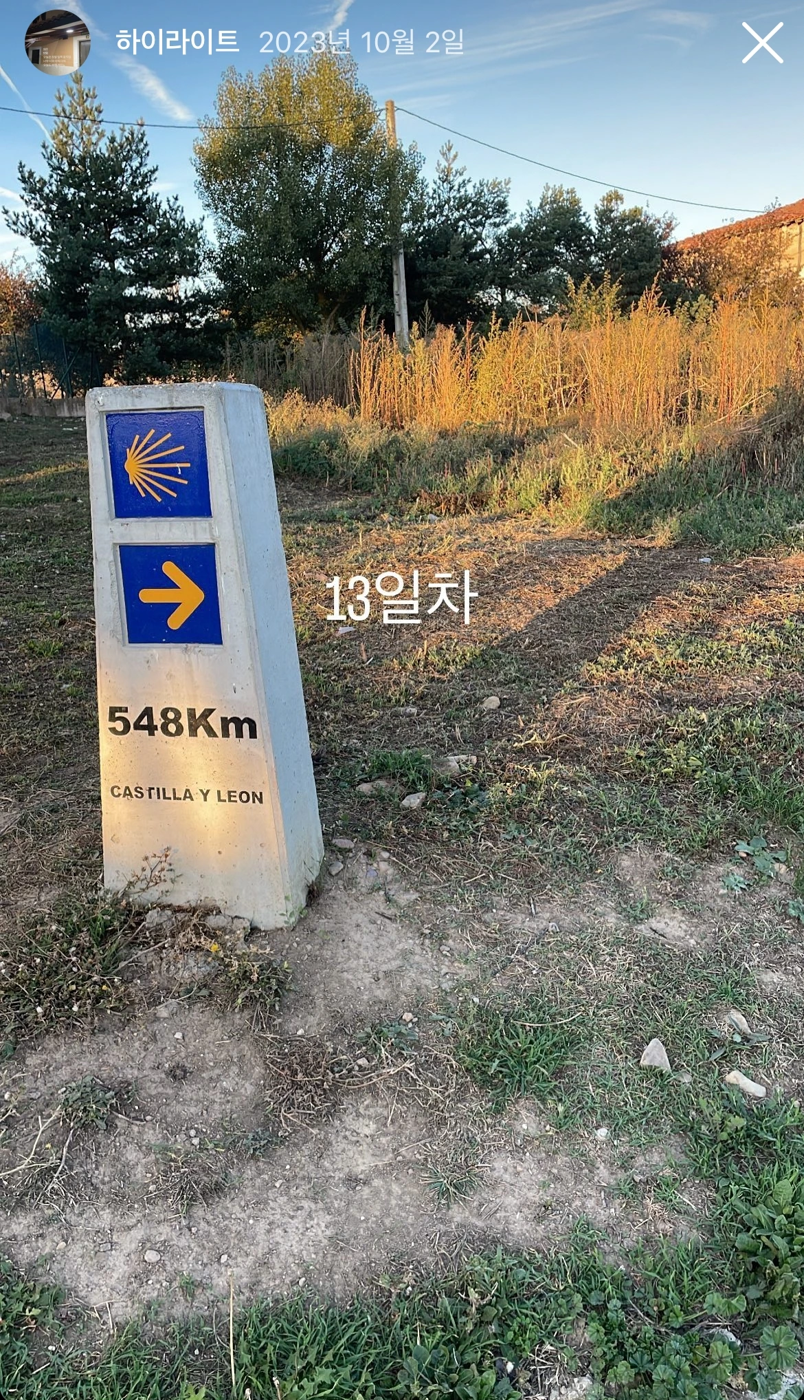 내가 갈 이정표를 알려주는 카미노 비석에 548km가 남아 있다고 알려 준다.