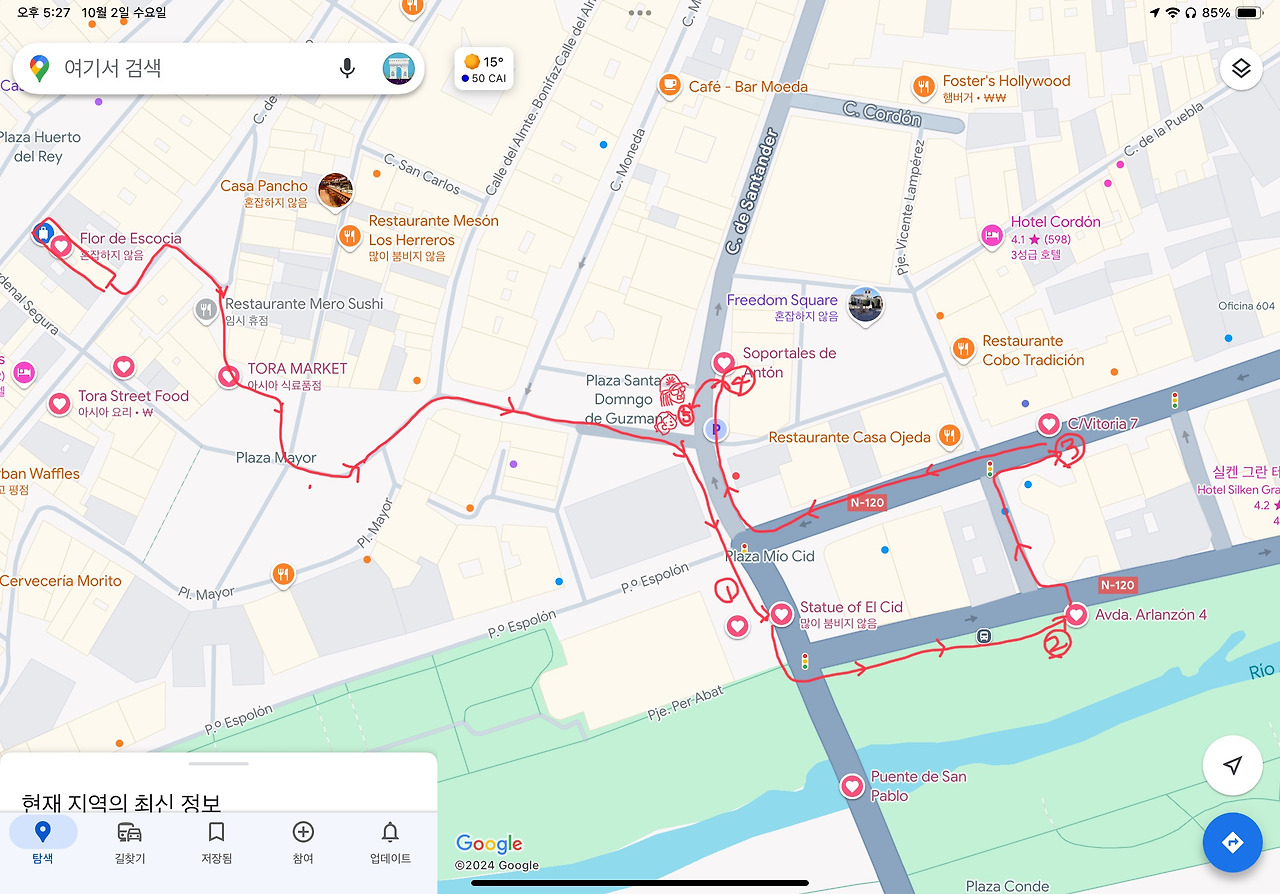 아침을 다 먹고 구글맵으로 현재위치와 부르고스행 거리를 찾아보니 4.7km였다.