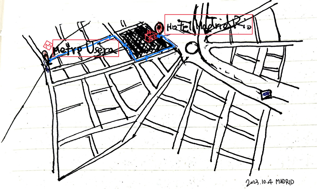 마드리드 차마틴 역에서 Hotel Madrid Rio까지는 다행히 한 번의 환승 후 숙소 근처 역까지 도착할 수 있었다. 역에 내려서 숙소로 가는 길은 언덕 한 중간에 있었다. 확실히 마드리는 부르고스처럼 걸어서 하루 만에 모든 곳을 볼 수 있는 곳은 아닌 것 같다.