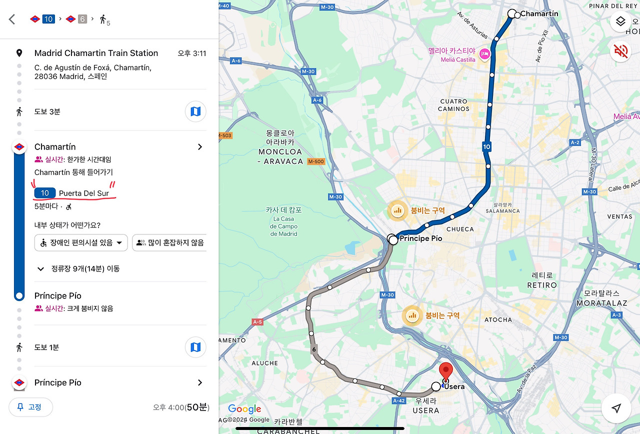 나: (구글지도를 보여 주며) 아마도 Metro Usera역까지인 것 같아요.