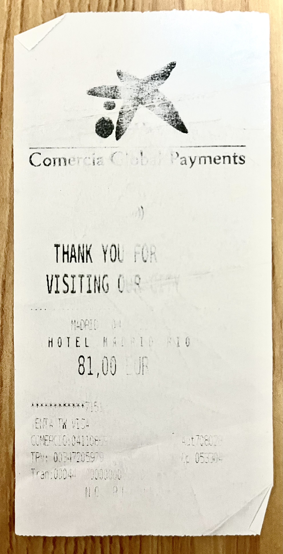 0층 프런트로 가서 부킹닷컴 예약 증서와 여권을 꺼내고 카드로 81유로를 결제를 마쳤다.