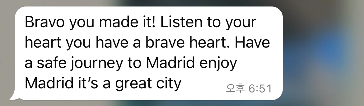 몽지아는 게다사 나에게 용기를 불어넣어주는 메시지까지 왓츠앱으로 보내주셨다.