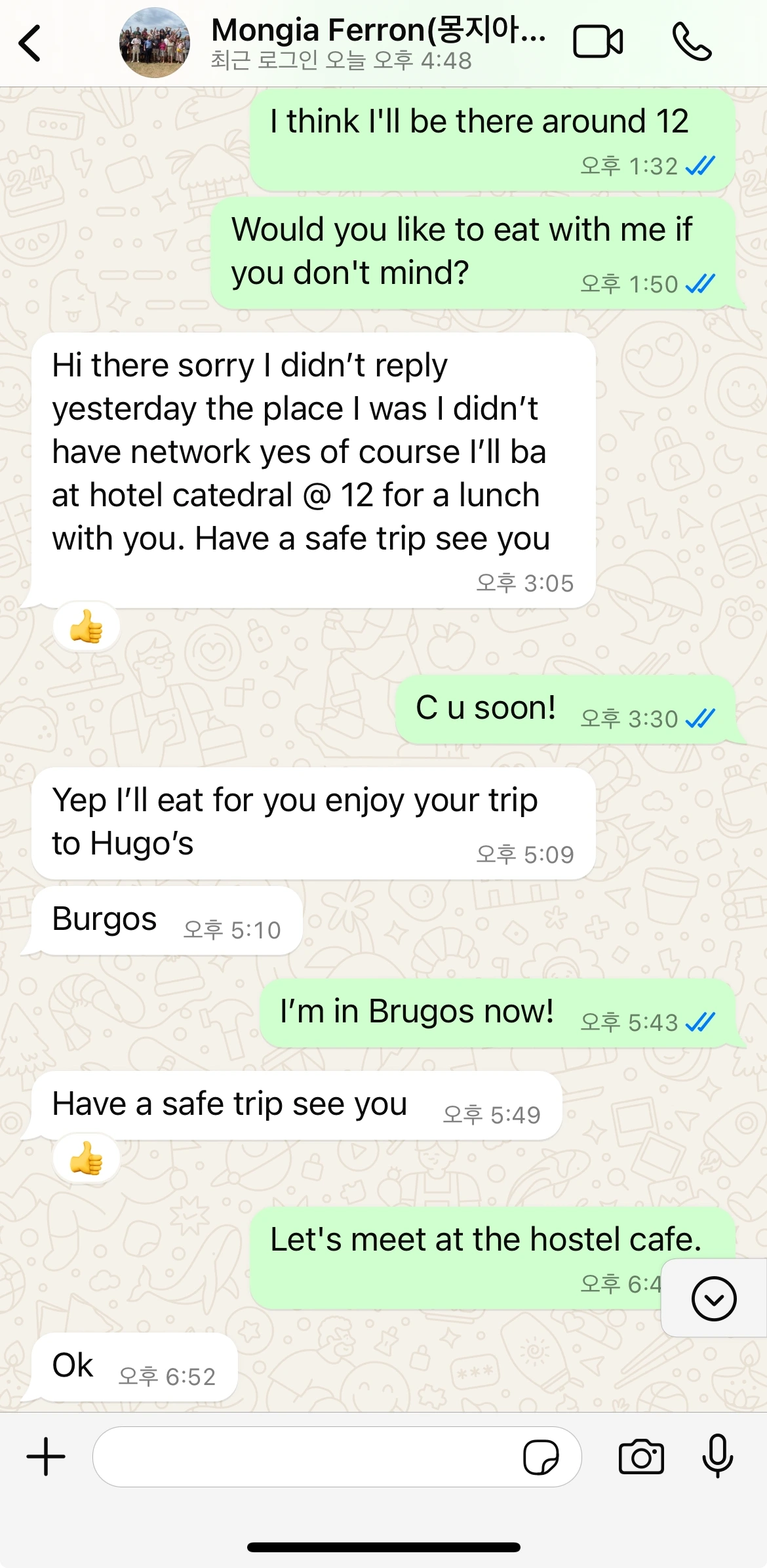 우리는 부르고스에서 함께 머물렀던 숙소 앞에서 12시에 만나기로 약속을 다시 잡았다.