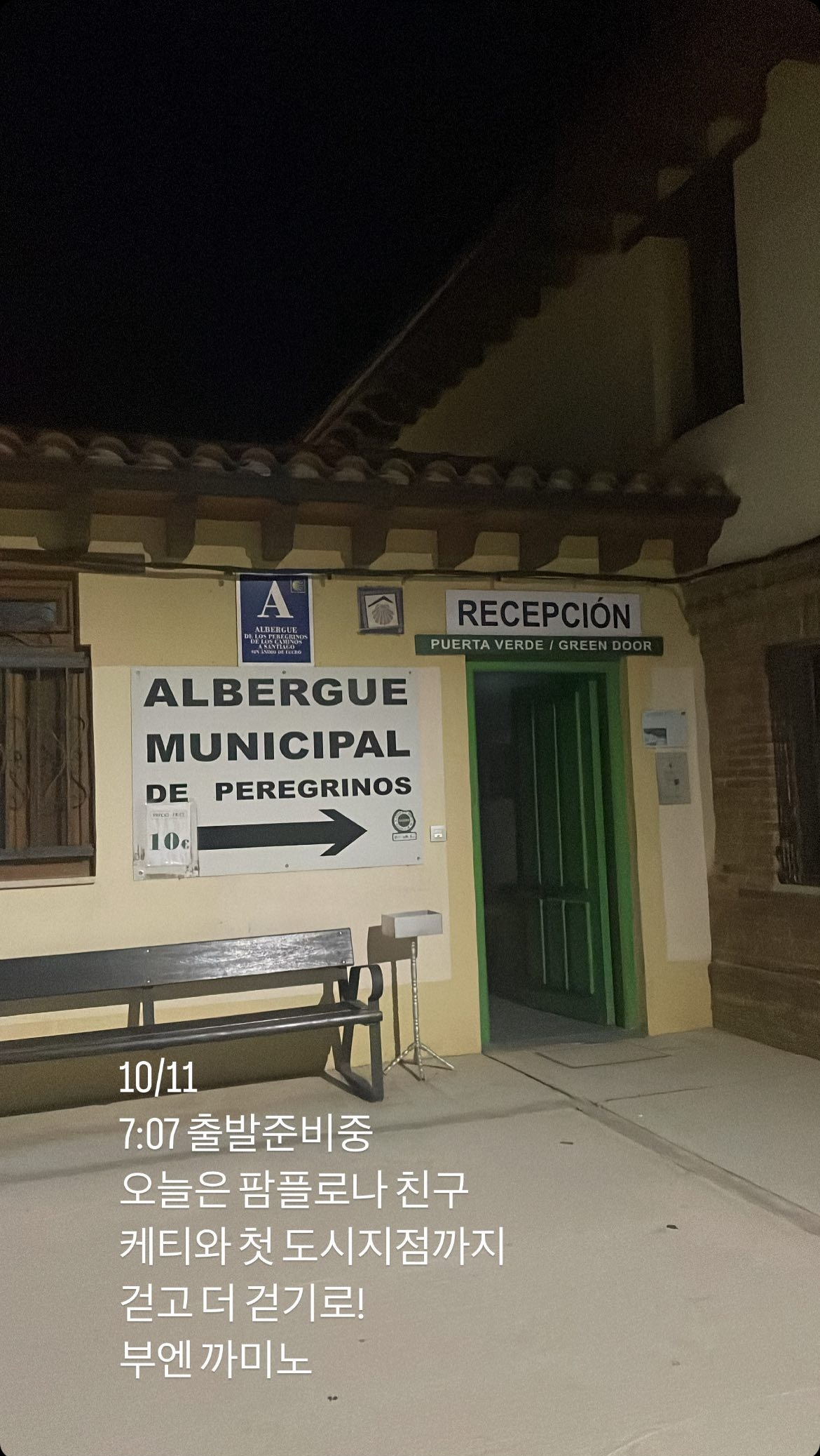 길게 줄지은 침대들을 지나 미닫이 문을 열고 복도로 나와야지만 화장실이 있기 때문에 새벽 5시부터 일찍 일어나 준비하는 순례자들의 움직임에 미닫이문이 닫힐 틈이 없었다. 어제 캐시와는 아침 7시 숙소 앞 카페에서 만나기로 약속을 했다.
