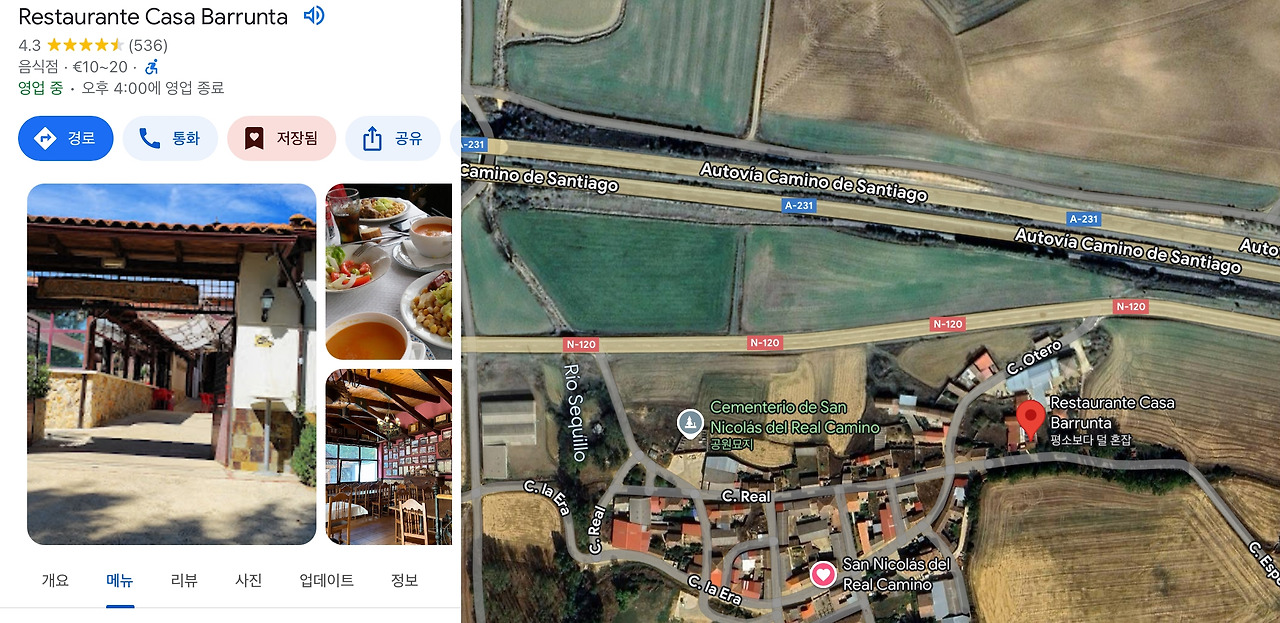 캐시와 길을 걷던 중 만난 Restaurante Casa Barrunta에 우리는 앞 뒤 가리지 않고 무조건 들어갔다. 이곳은 산 니콜라스 델 카미노 도시의 입구에 위치해 있다.