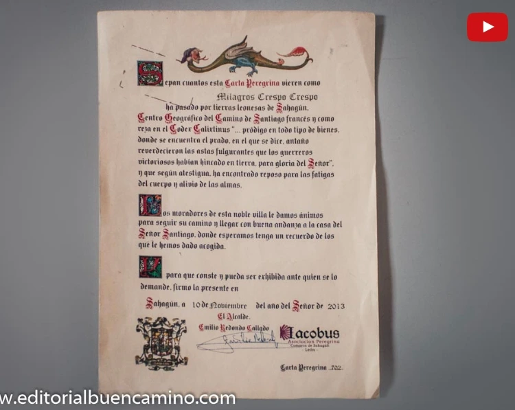 사하군에서 프랑스 길 중간 지점에 도달했음을 나타내는 순례 증명서를 받을 수 있다.