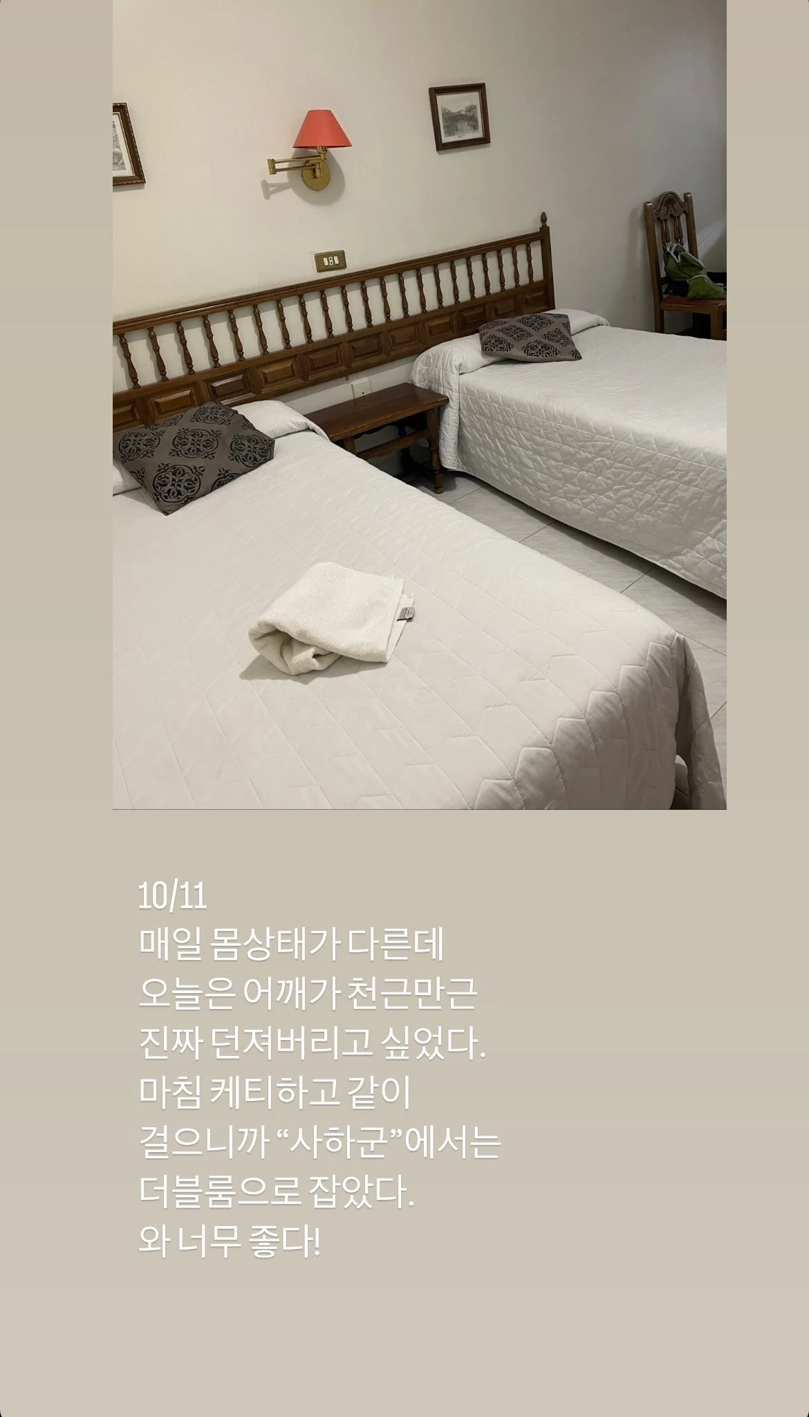 가끔은 이렇게 좋은 방에서 휴식을 취하는 게 걷기에 더 도움이 된다.