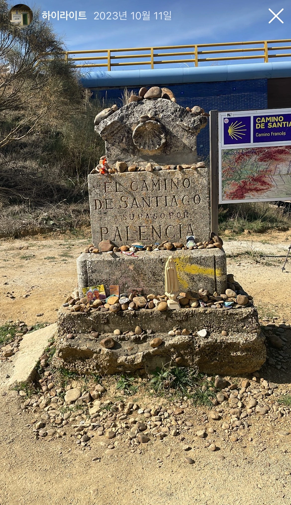 길바닥엔 자갈돌로 만든 화살표가 우리의 여정을 안내했다. 처음으로 나타난 작은 성당을 구경하고 수돗가에서 목을 축였다.
