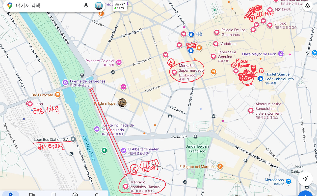 비가 내리는 도심을 한 바퀴를 삥 돌아 다시 레온 대성당 쪽으로 돌아 걷기 시작했다.