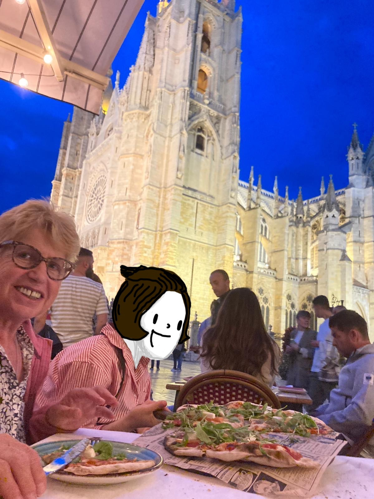 유럽 사람들이 언제 식사를 하는지 보면 거의 대부분 저녁을 거하게 먹는 것 같다. 늘 풍성하게 먹는다. 나와 마리앤이 피자를 들고 레온대성당을 배경으로 안나가 인증숏을 찍어 주셨다.