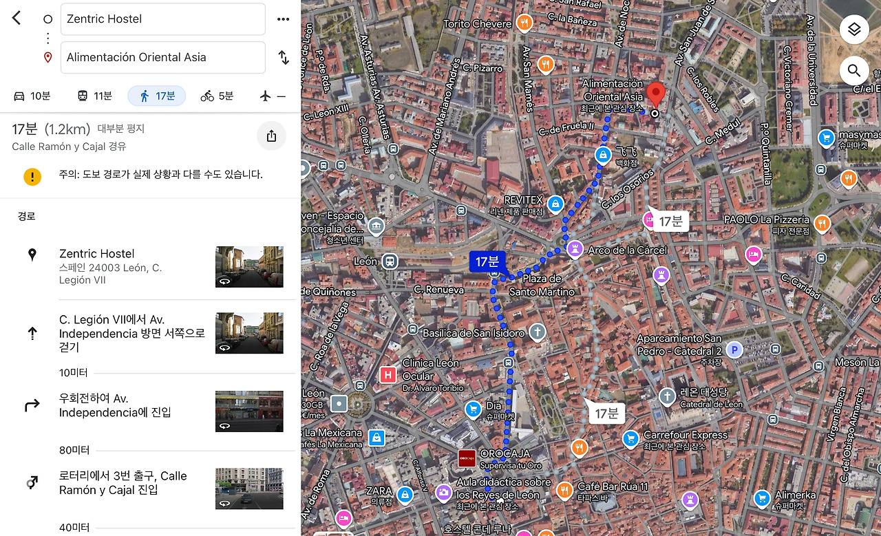 젠트릭 호스텔이 개인 아파트 같은 곳이었다면 여기는 전문 호스텔로 방안에 캡슐 침대가 줄지어 있고, 아침도 무료로 제공되는 곳이었다. 그리고 여성전용방이라 소음도 덜 할 거라 기대하며 숙소로 이동했다. 젠트릭은 고급 상점과 호텔이 쪽에 위치해 있다면, 호스텔 팔라치오 자발콴토 바이 쿼터 레온 은 대성당 근처에 위치한 구시가지로 들어가야 했다.
