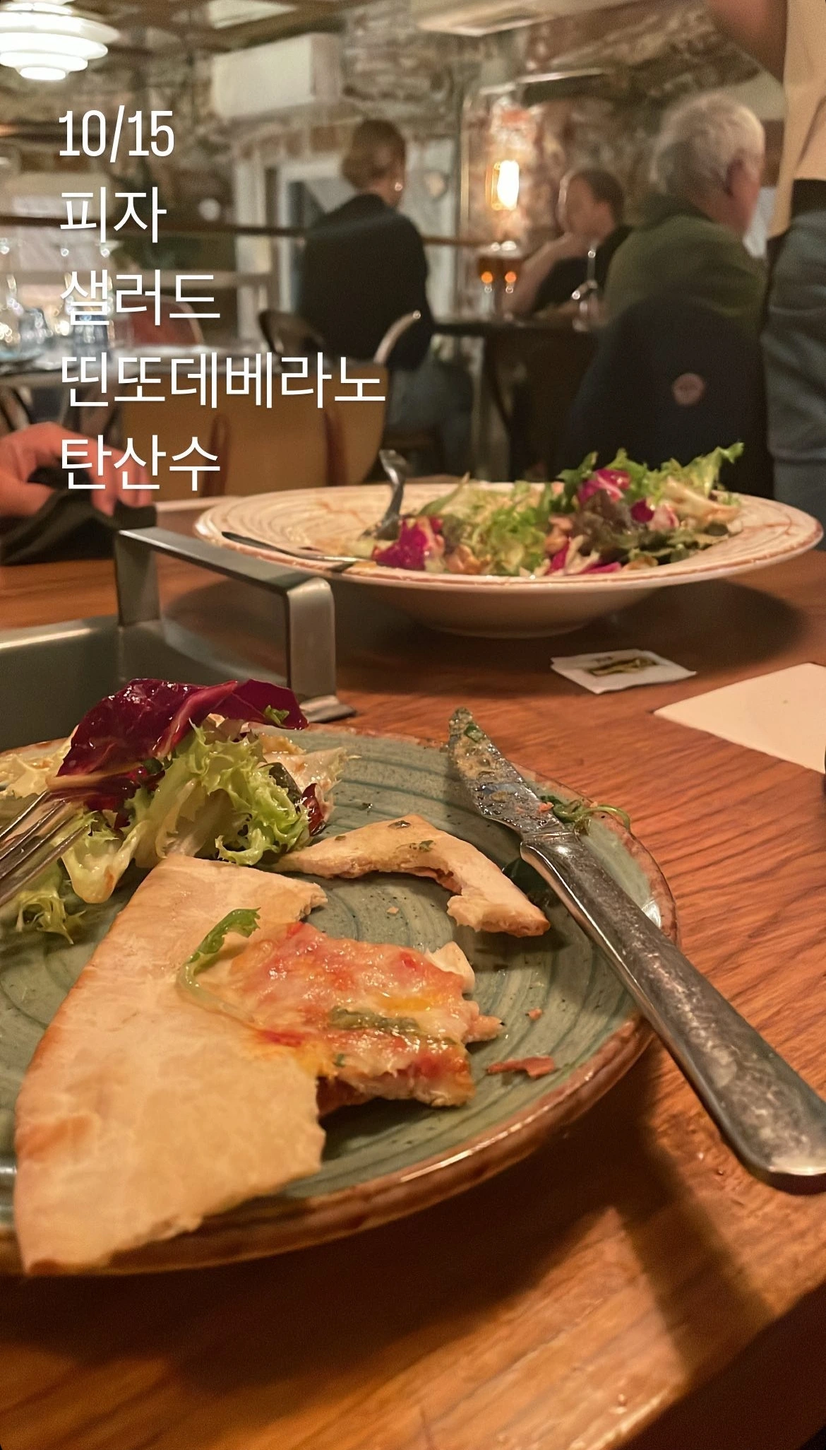 오래간만에 조셉님을 만나 어제 안나와 갔었던 엘 토포 이탈리아 레스토랑에 다시 가서 피자와 샐러드를 먹었다. 어제와 다르게 너무 추웠기 때문에 식당 안으로 들어가 음식을 주문했다. 안으로 들어온 손님들로 식당 안은 정말 소란스럽고 정신이 없었다.