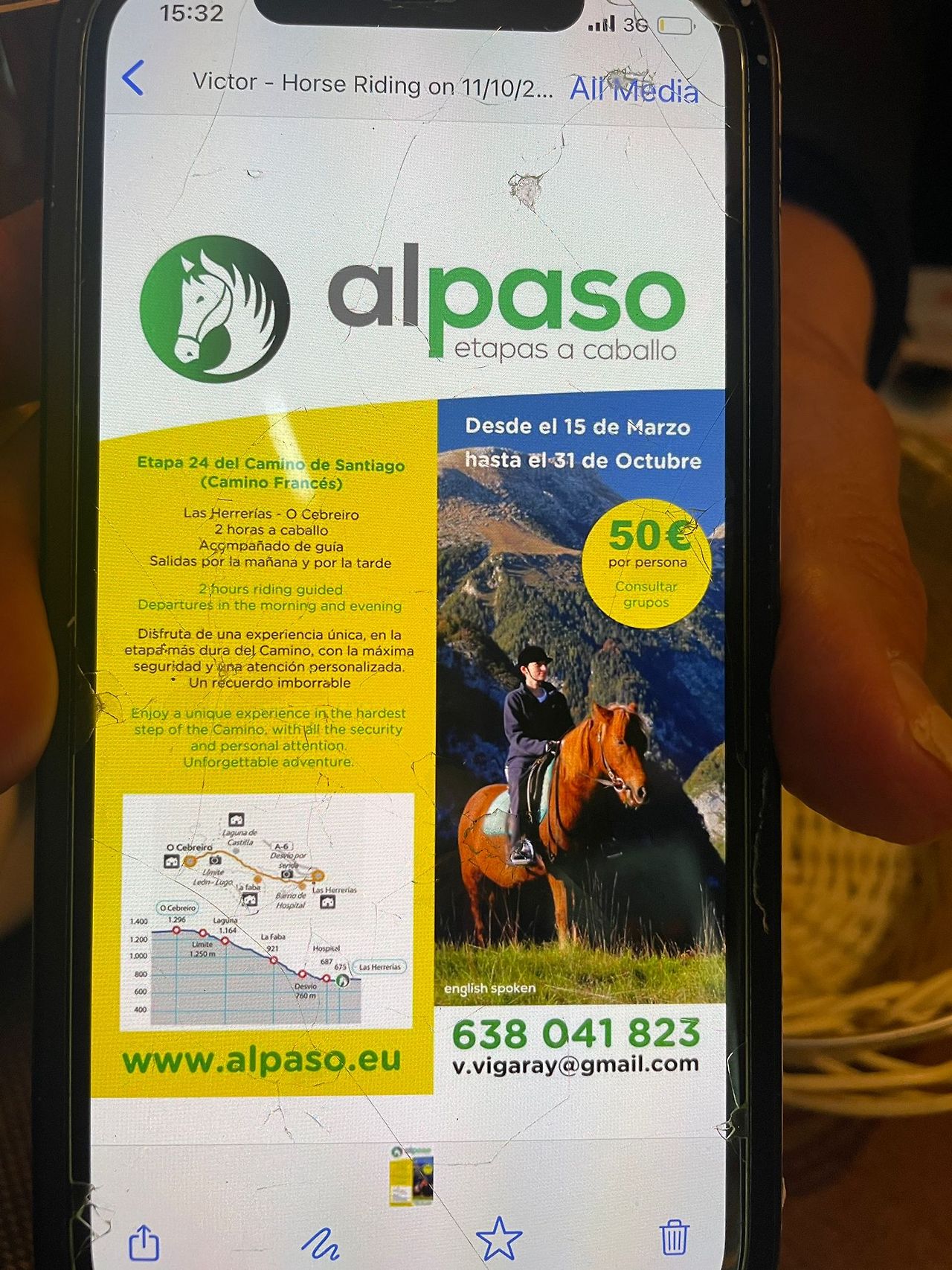 우리는 점심을 함께하며 서로 한층 가까워진 분위기 속에서 피아가 준비하고 있는 특별한 산티아고 이벤트에 대해 이야기를 나눴다. 그것은 바로 순례길에서 승마 체험이었다.