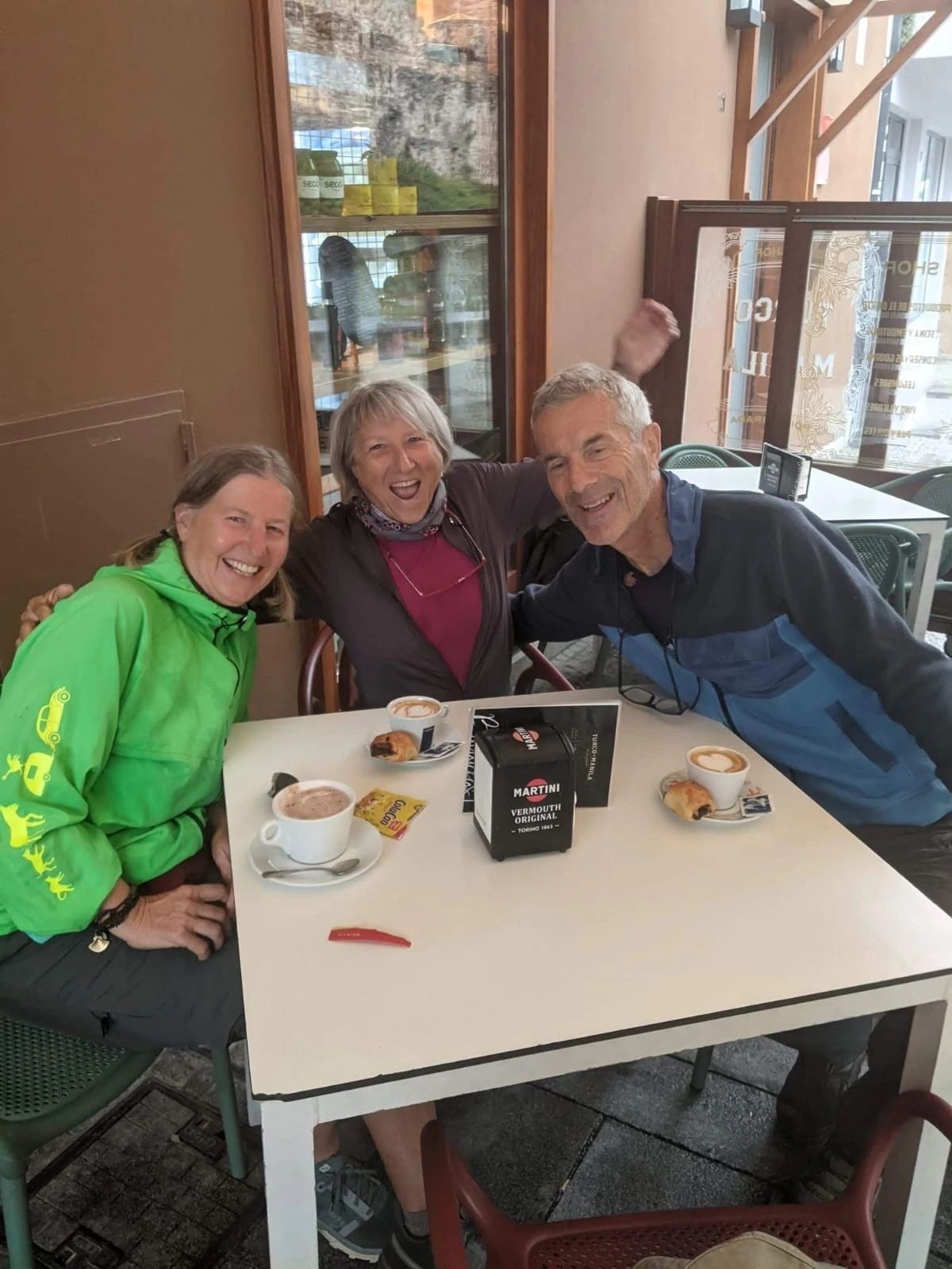 길을 걷다 보니, 걱정스러운 마음으로 함께 걸었던 프랑스 부부와 폰페라다 성 앞에 자리 잡은 카페에서 독일인 순례자 수잔이 그곳에 있었다. 우리는 초반 중반 후반 분기별로 서로 스탭이 교차했다.