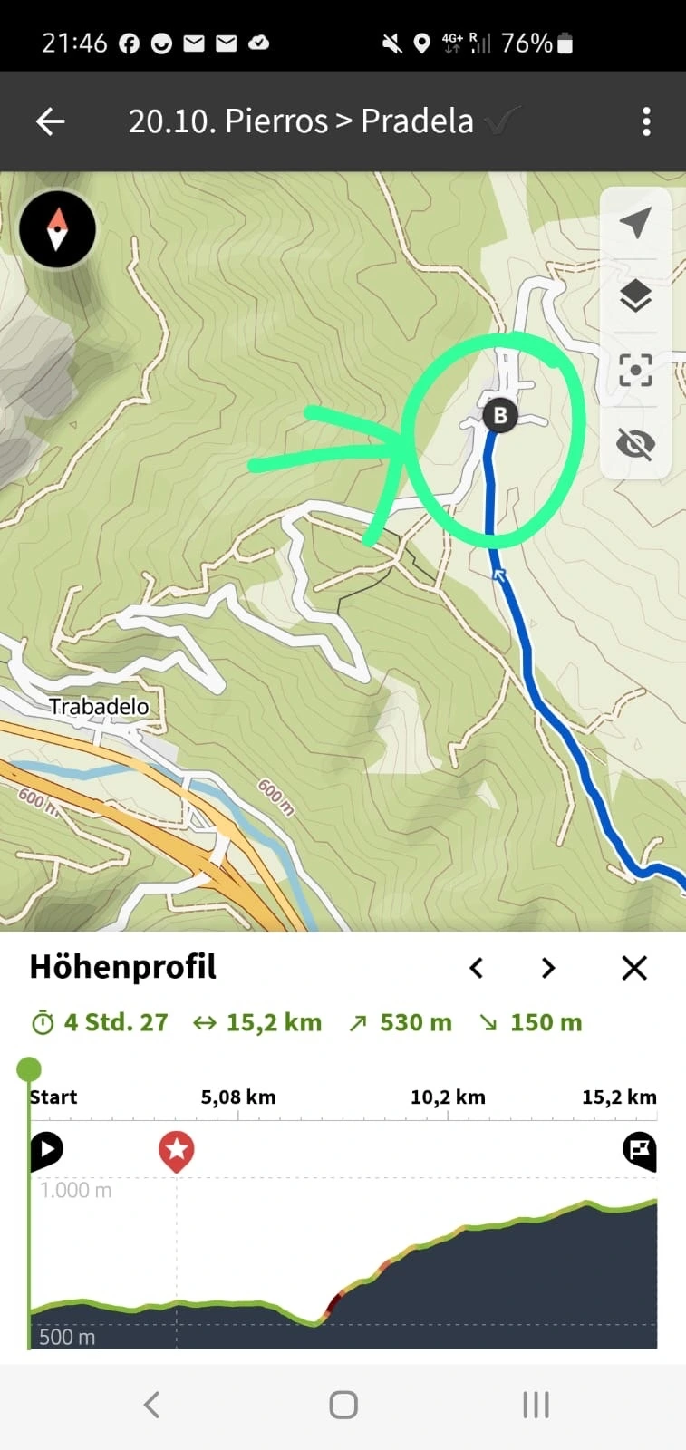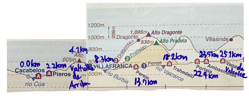 이 지점에서 빌라프랑카 델 비레르조에서 나와, 프라델라 방향으로 가는 변형 루트를 따라갈 수 있으며, 후에 트라바델로에서 산티아고 공식 루트와 만나게 된다.