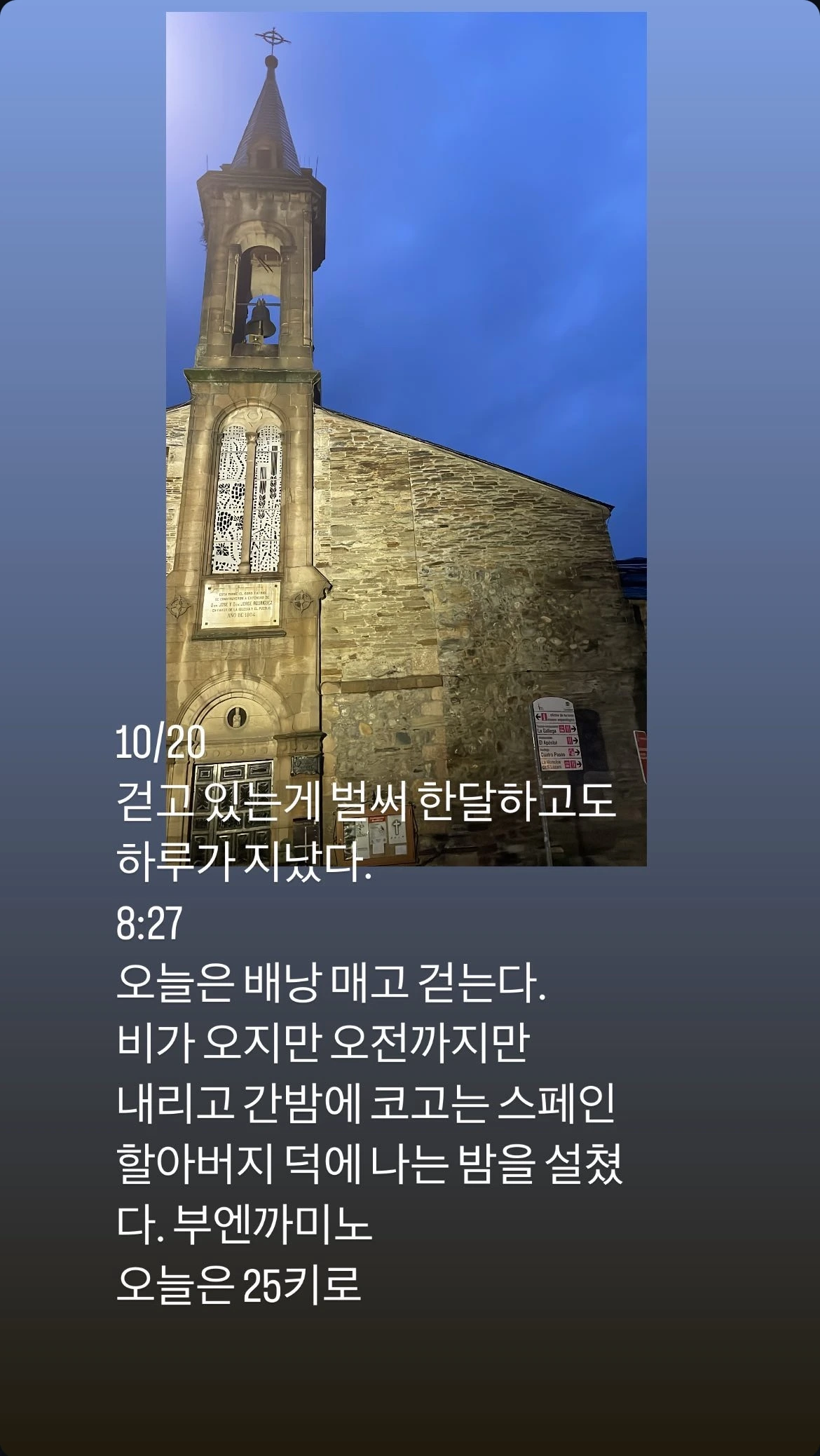 오늘 하루는 울고 웃으며 긴 하루였지만, 좋은 순례자 동료를 만나고 만족스러운 숙소를 선택해 가슴이 벅찬 하루를 마무리할 수 있었다.