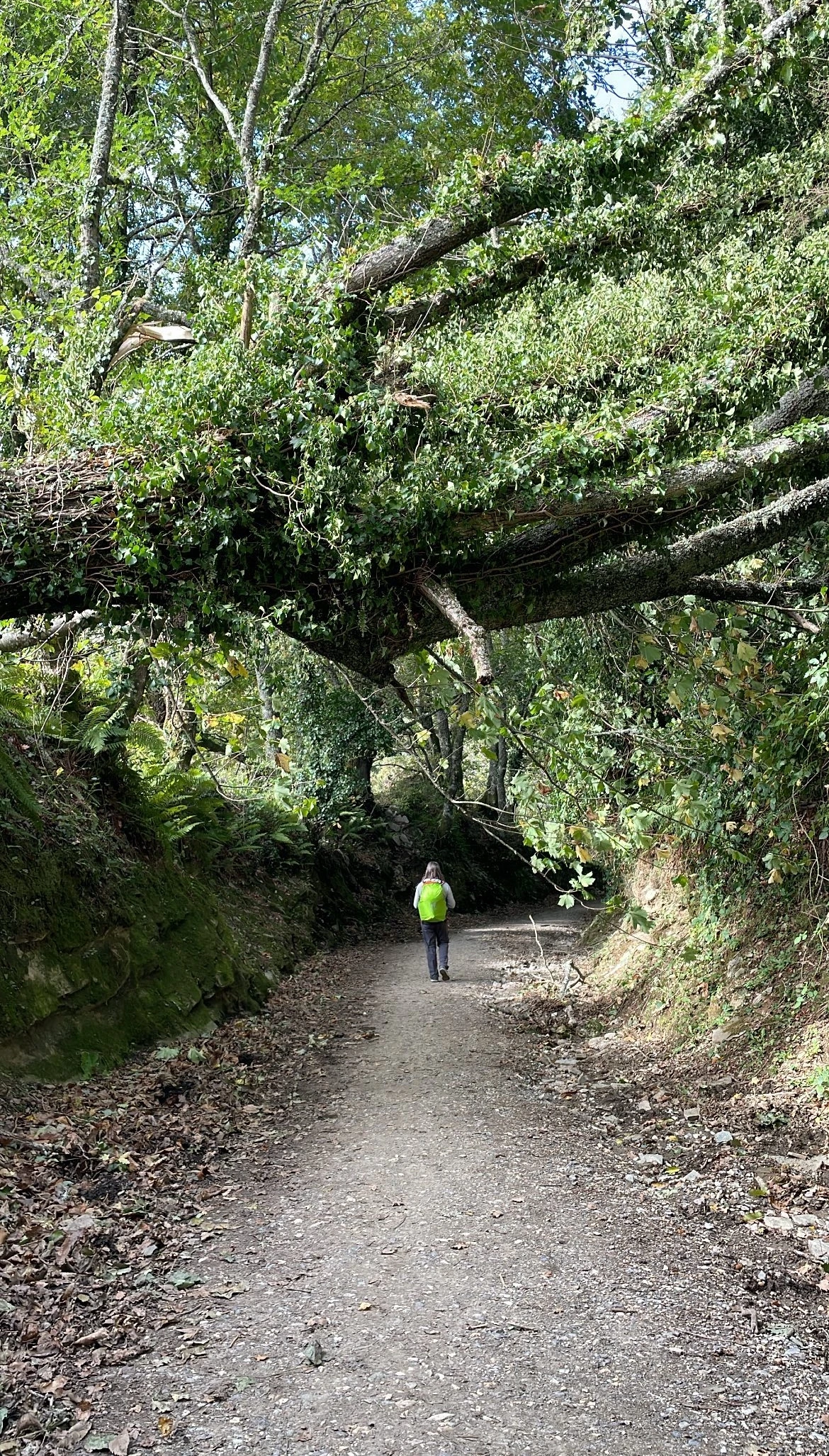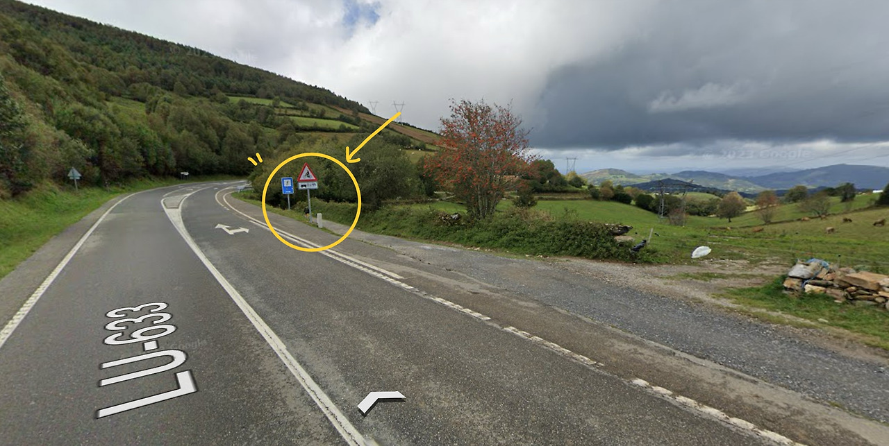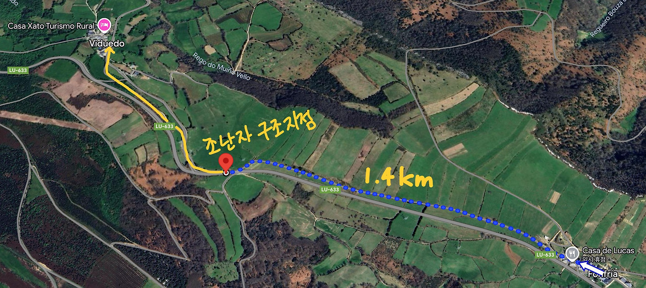 숲길과 도로가 합쳐지는 내리막길을 걷고 있었다. 폰프리아에서 1.4km 정도 걸어간 시점이었다.