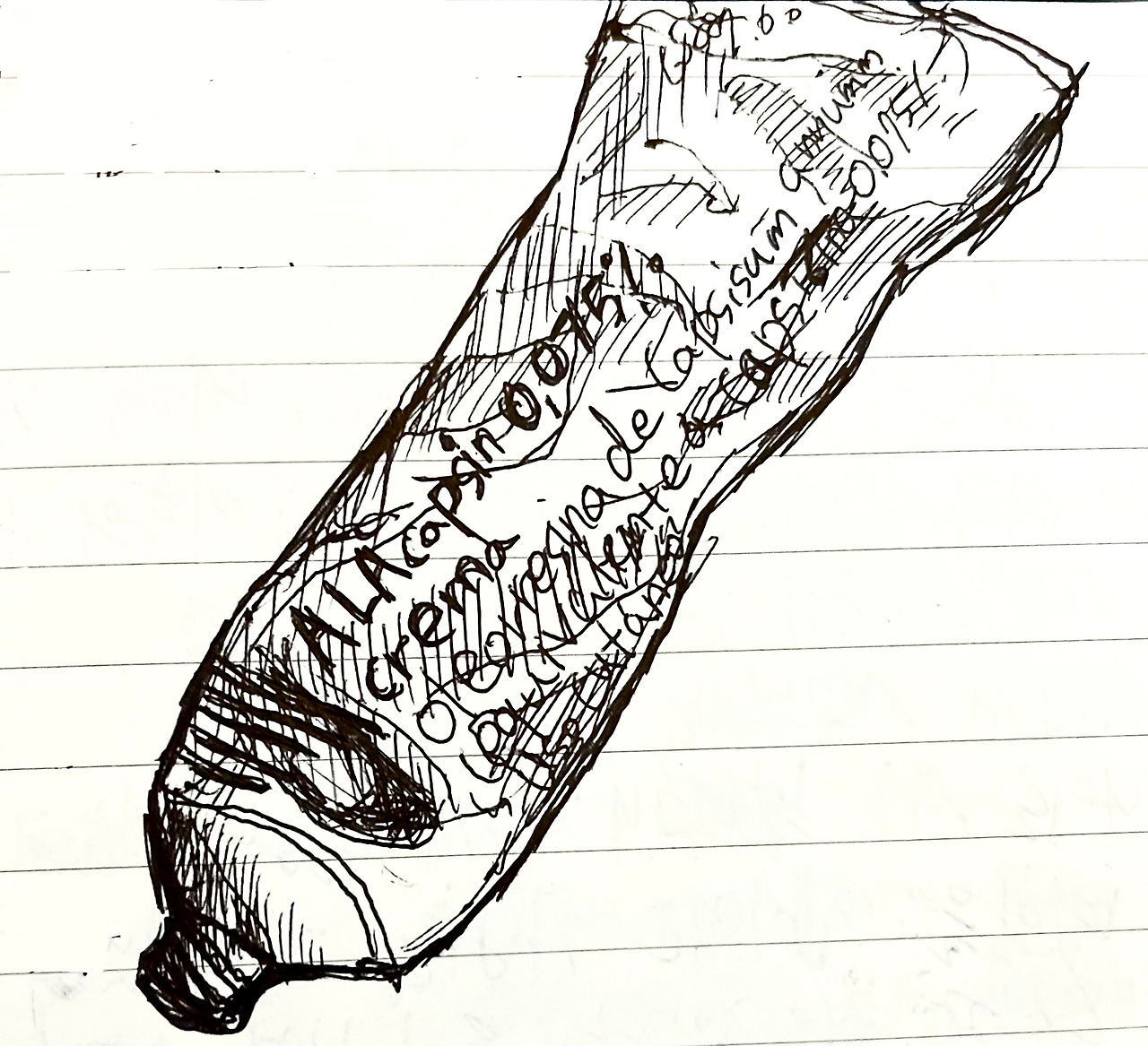 나는 무슨 연고인지 궁금해서 물어보니, 이 연고는 뜨거워지는 발열 연고라서 꼭 장갑을 끼고 마사지를 해줘야 한다고 했다. 그러더니 나에게 너무 자연스럽게 “너 바르고 싶은 곳이 있으면 발라줄게”라고 말해서, 나는 아무 생각 없이 어쩌다 보니 약 정보와 내 발목을 내주게 되었다. (맙소사!)