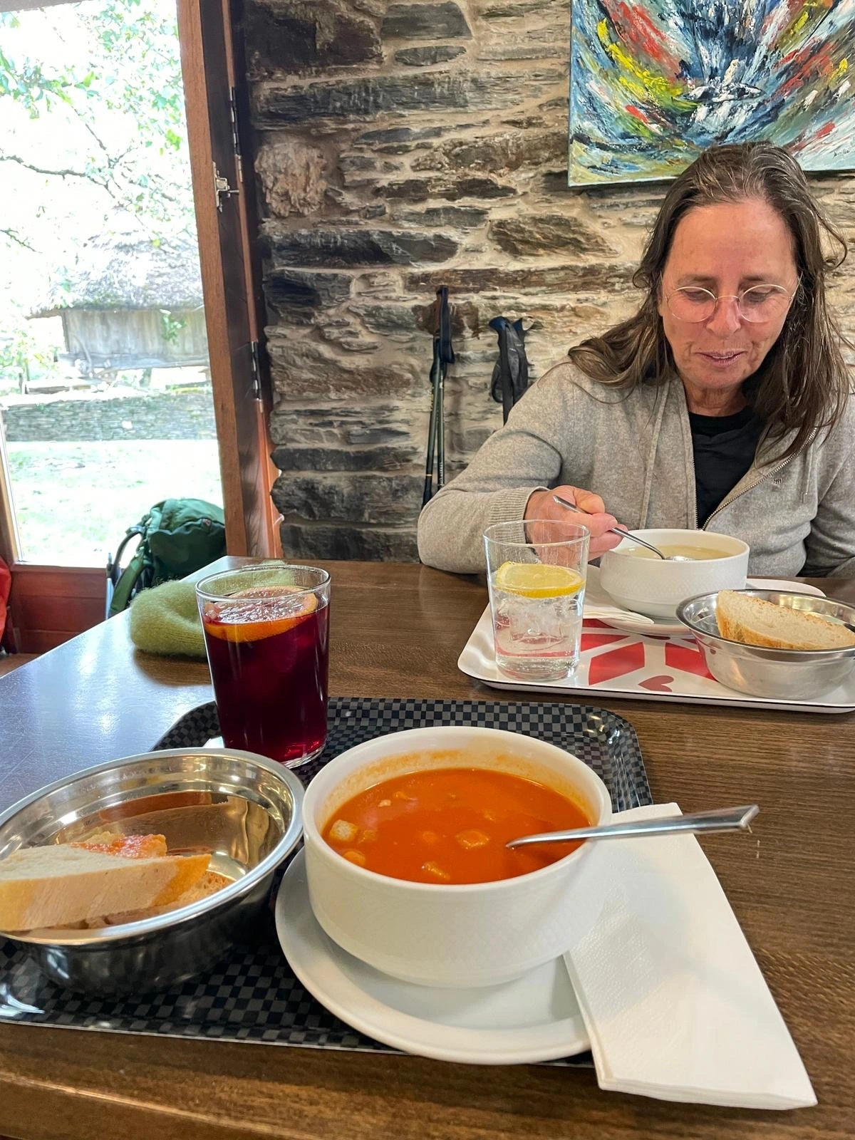 로닛은 갈리시아 수프와 레모네이드를 시켰고, 우리는 합석하여 함께 점심을 즐겼다.