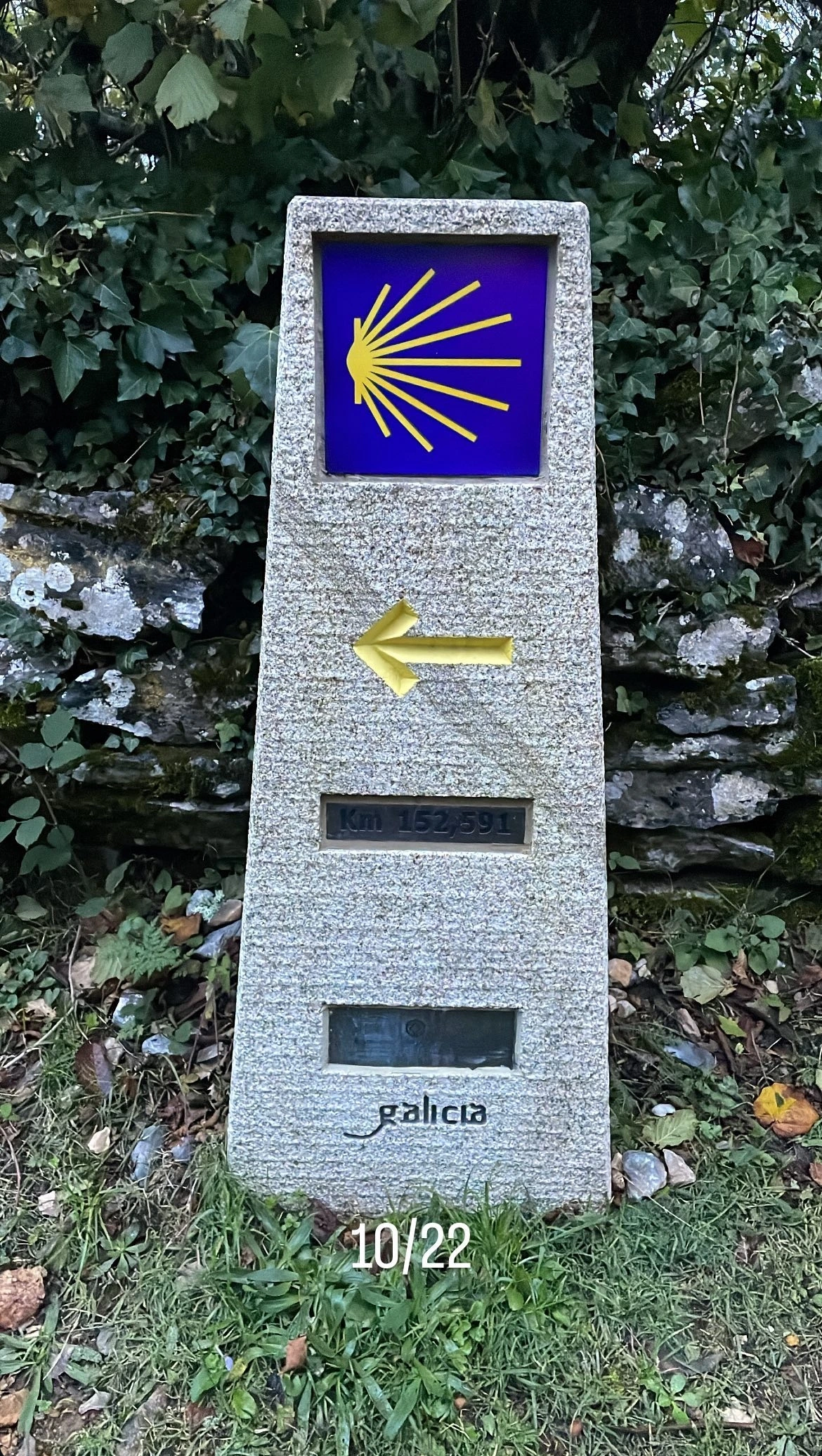 숲길 양옆으로는 무성하게 자란 고사리들이 마치 정리되지 않은 머리칼처럼 삐죽삐죽 자라나 인도를 침범할 정도였다. 길가에 서 있는 산티아고 비석은 ‘152.591km 남음’을 가리키고 있었고, 여전히 노란 화살표는 끝까지 걸으라고 손짓하는 듯했다. 800km라는 긴 여정도 어느덧 152km밖에 남지 않았다. 그렇게 생각하니 문득 첫날 순례길을 내딛던 순간이 떠올랐다.