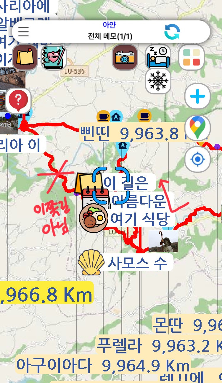 우리는 서로 각자 따로 알게 되었지만, 이렇게 한 장소에 모여 함께 식사할 생각을 하니 사리아까지 걸은 26킬로미터의 거리가 피곤하기보다는 기대감과 설렘이 더 컸던 것 같다. 저녁 이야기를 쓰면 사모스 길의 고독함을 느끼기 어려울 것 같아 샤워를 마친 후 글을 마무리하려 한다.