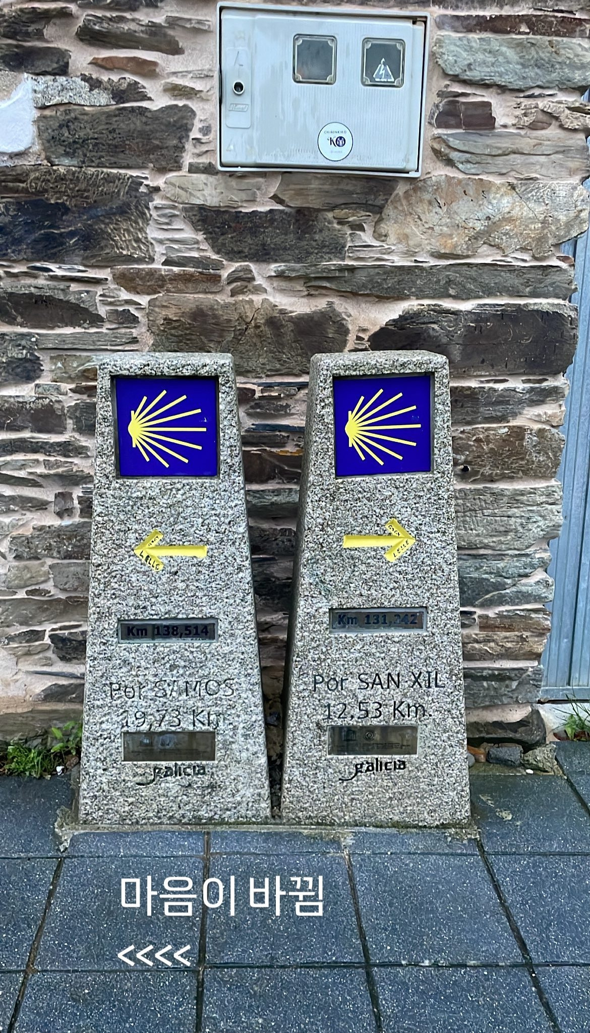 처음에는 비가 내리고, 7km를 줄일 수 있다는 생각에 오른쪽 길을 따라 걷기 시작했다. 많은 순례자들이 그 길을 선택했기에, 나도 자연스럽게 그 흐름을 따랐다. 그러나 갑자기 마음이 바뀌었다. 이유는 모르겠지만, 천천히 조용히 걷고 싶다는 생각이 들었다.