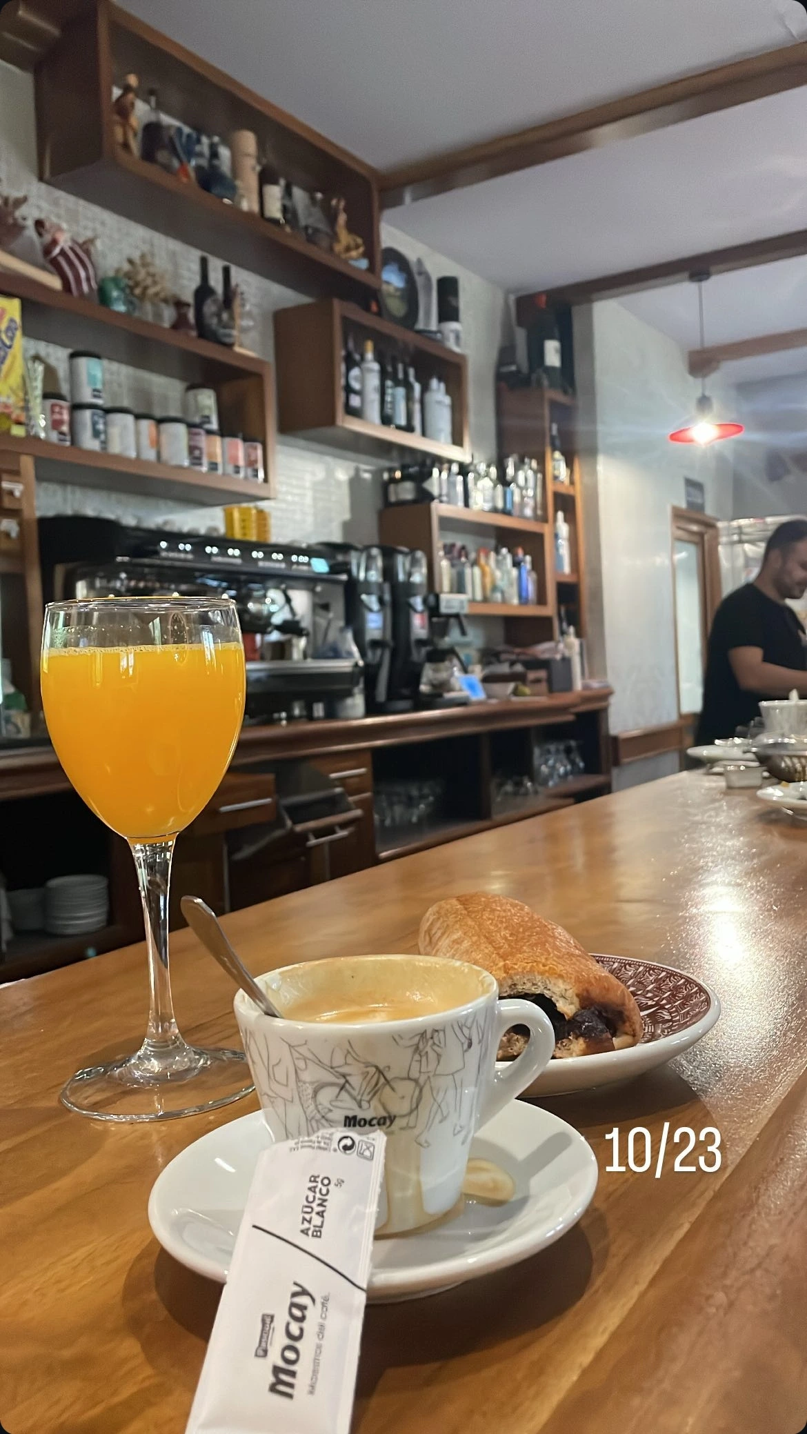 갖구운 빵은 없었지만, 오렌지 주스와 카페 콘 레체, 그리고 빵 오 쇼콜라를 시켜서 앉아서 먹기 시작하자 이제 좀 살 것 같다는 생각이 들었다.