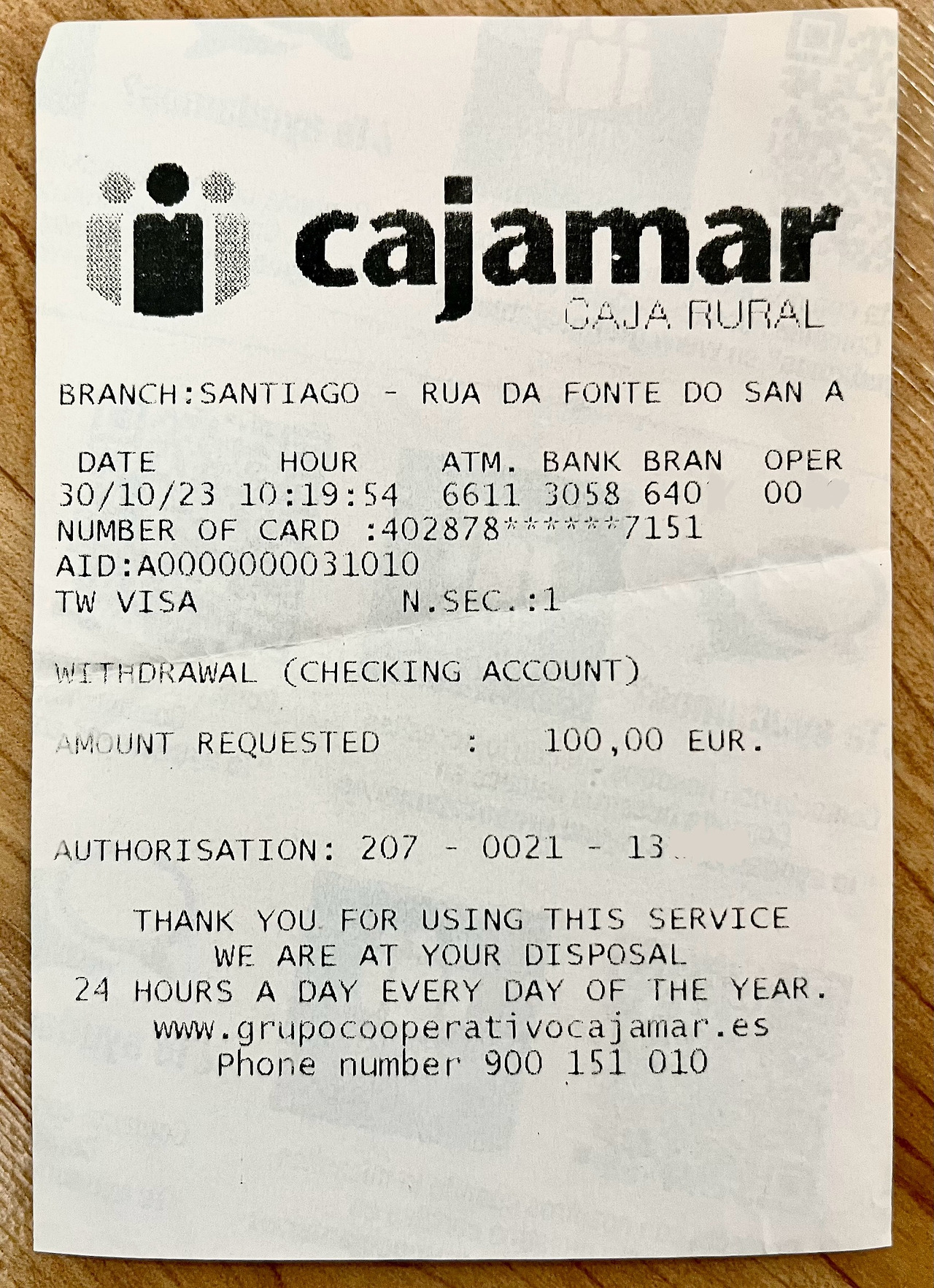 내려가는 길에는 은행과 ATM이 있어, 혹시 모를 현금을 준비하기 위해 100유로를 인출했다.