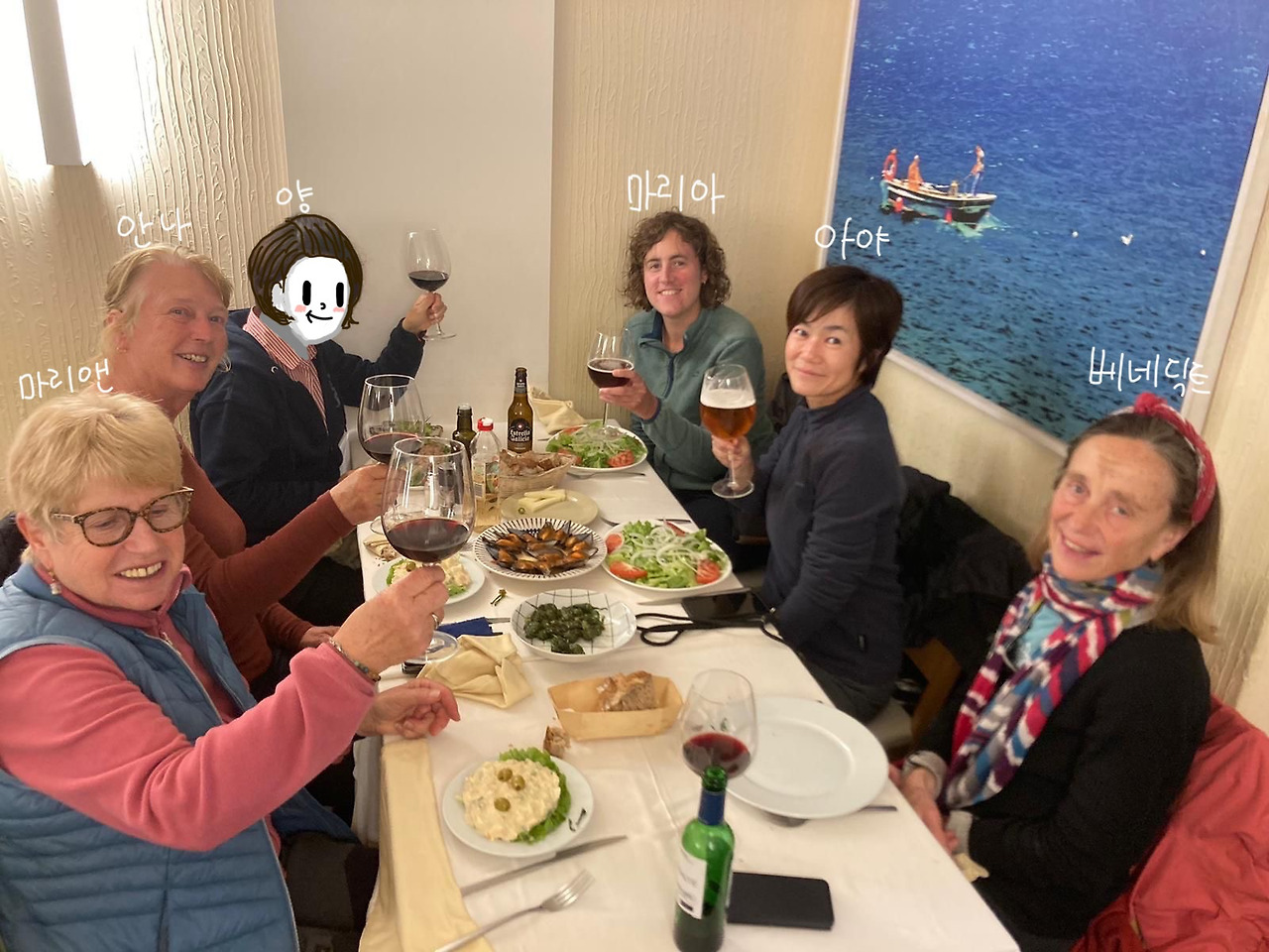 아야상은 예상대로 낯가림 없이 금세 모두와 잘 어울렸고, 그 덕분에 분위기는 한층 부드러워졌다. 마리앤은 프랑스어만 할 줄 알아 깊은 대화를 나누긴 어려웠지만, 카미노에서 우리는 자주 마주치고 같은 템포로 걸으며 이미 충분히 교감해 왔던 사이였다. 아마 내가 불어를 조금이라도 할 줄 알았다면 더 친해질 수 있었을 텐데 하는 아쉬움이 남았다.
