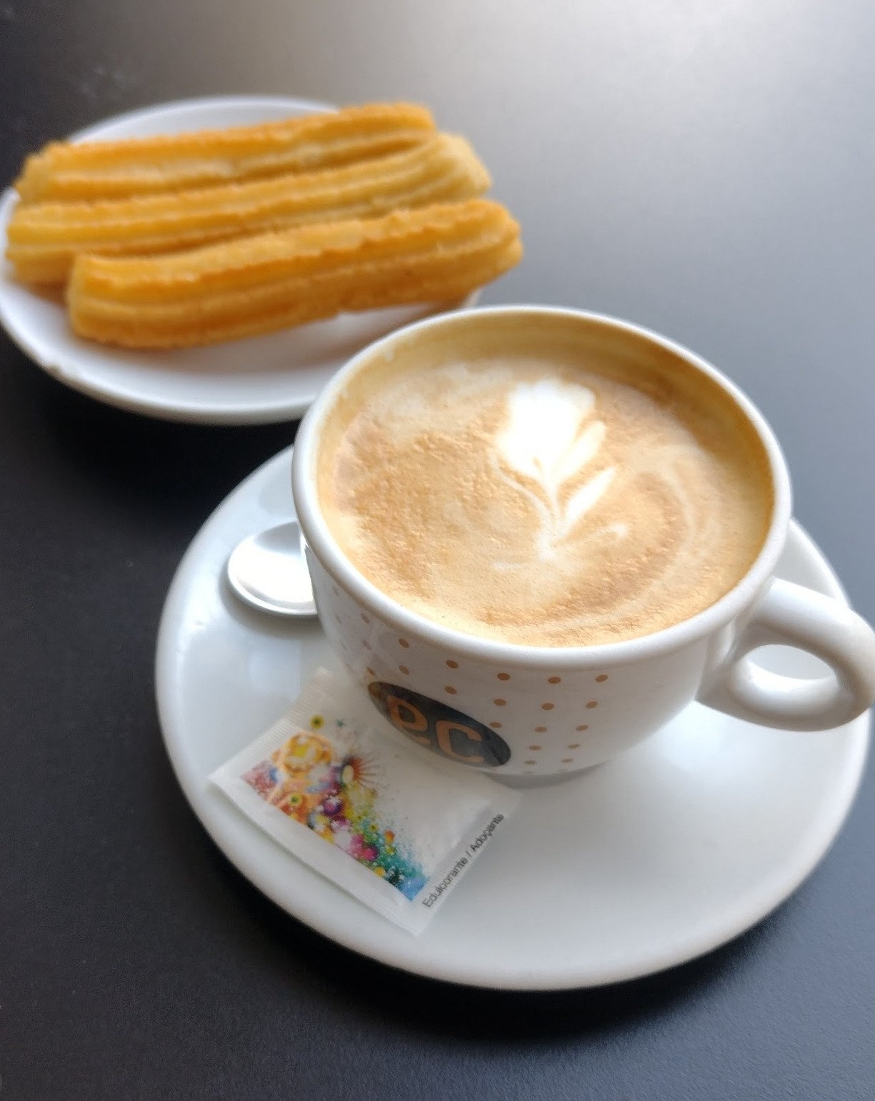 우리는 카페에 앉아 카페 콘 레체와 아침에 서비스로 나오는 추로스를 먹으며 아쉬움을 달랬다.