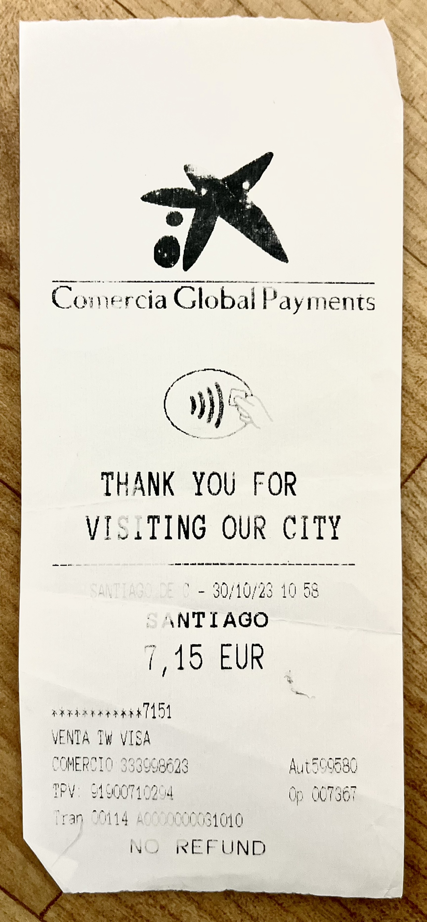 나는 버스터미널에 도착해 2023년 10월 31일 오전 10시에 피스테라행 버스 티켓을 끊고 대기장소로 갔다. 그곳에는 로닛이 버스를 기다리며 앉아 있었다. 로닛은 11시 30분에 파리행 버스를 타기 위해 10시 30분까지 터미널에 있을 거라고 했었다. 터미널은 집으로 돌아가기 위해 분주히 움직이는 순례자들로 가득했다.