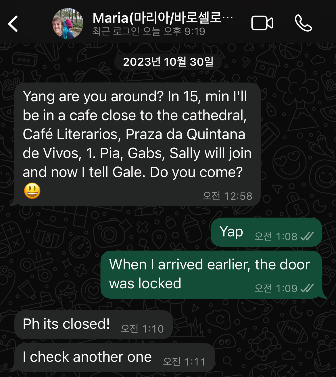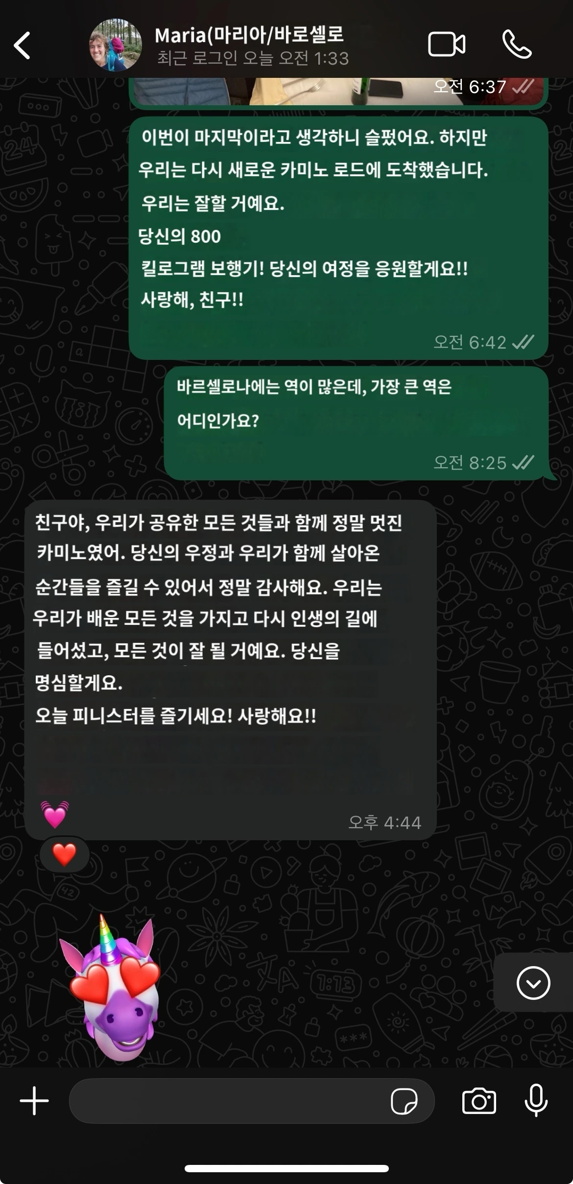 온종일 인사를 나누고 숙소로 돌아오니, 왓츠앱 창은 마지막 인사들로 가득 차 있었다.