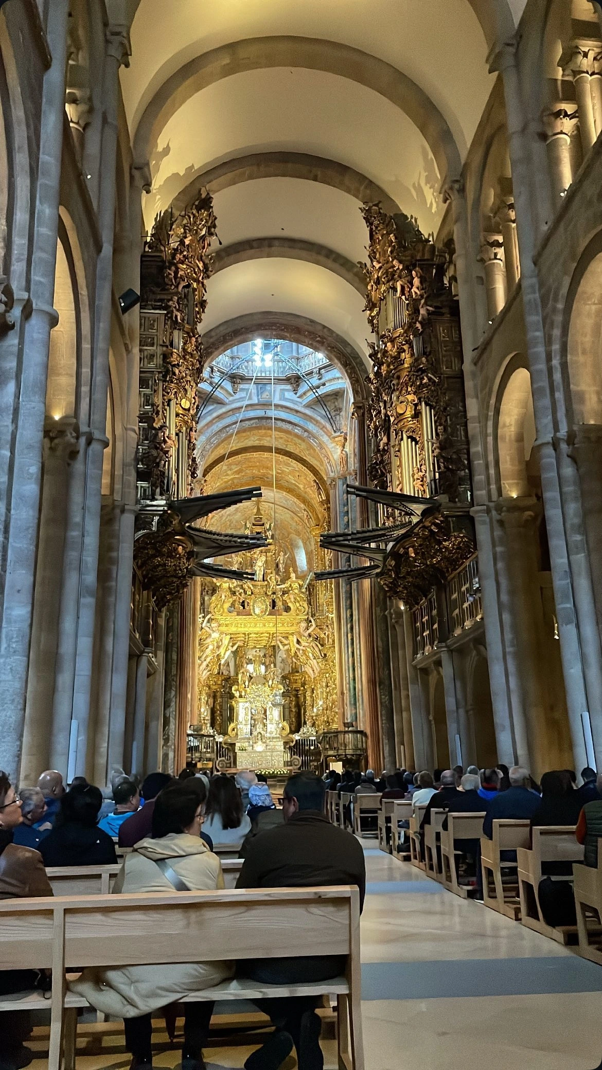 12시 순례자 미사에 참여하기 위해 성당 뒷문 대기줄에 합류해 성당 안으로 들어섰다. 마리아는 이미 성당 안에서 자리를 잡고 앉아 있다는 연락이 왔다. 순례자 미사에서 향로를 피웠던 이유는 야생의 길을 걸었던 순례자들을 위한 방역과 소독을 해주는 것이었다고 한다. 요즘은 종교적으로 길을 걷는 사람들이 완주를 마치고 향로의 연기를 뒤집어쓰며, 새롭게 깨어나는 의식처럼 종교적 행사로 이용된다.