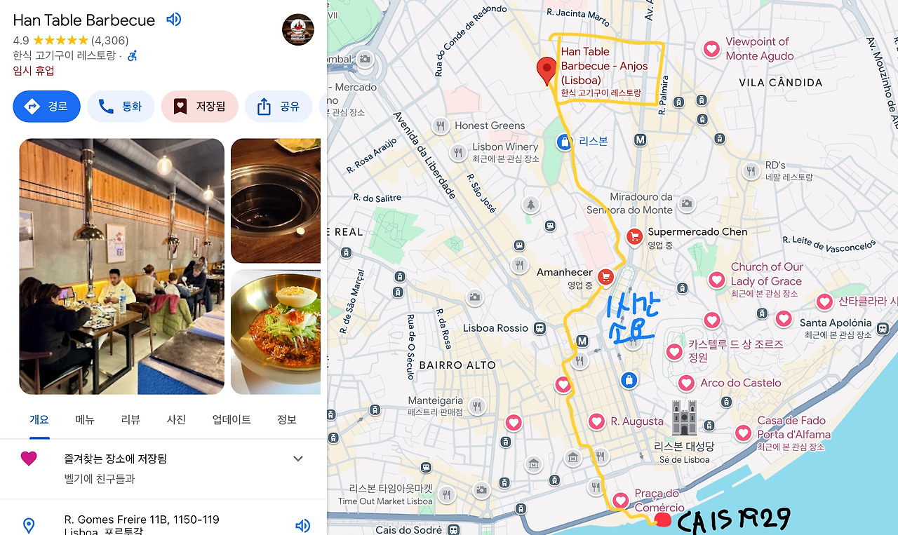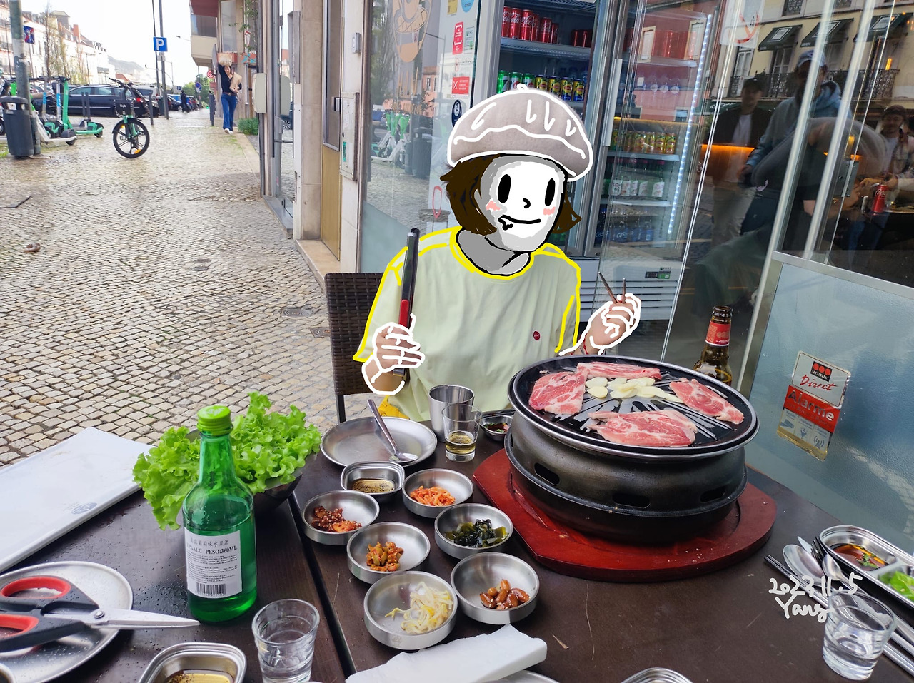 고기와 술, 반찬을 넉넉히 즐긴 두 유럽인은, 낮부터 마신 소주 덕분에 코가 빨개졌다. 돌아오는 길에는 아시안 마켓에 들러 쌈장을 구입했다. 초행길이던 가는 길과 달리, 리스본을 걸으며 익숙해진 덕분에 돌아오는 길은 훨씬 빠르고 수월했다.