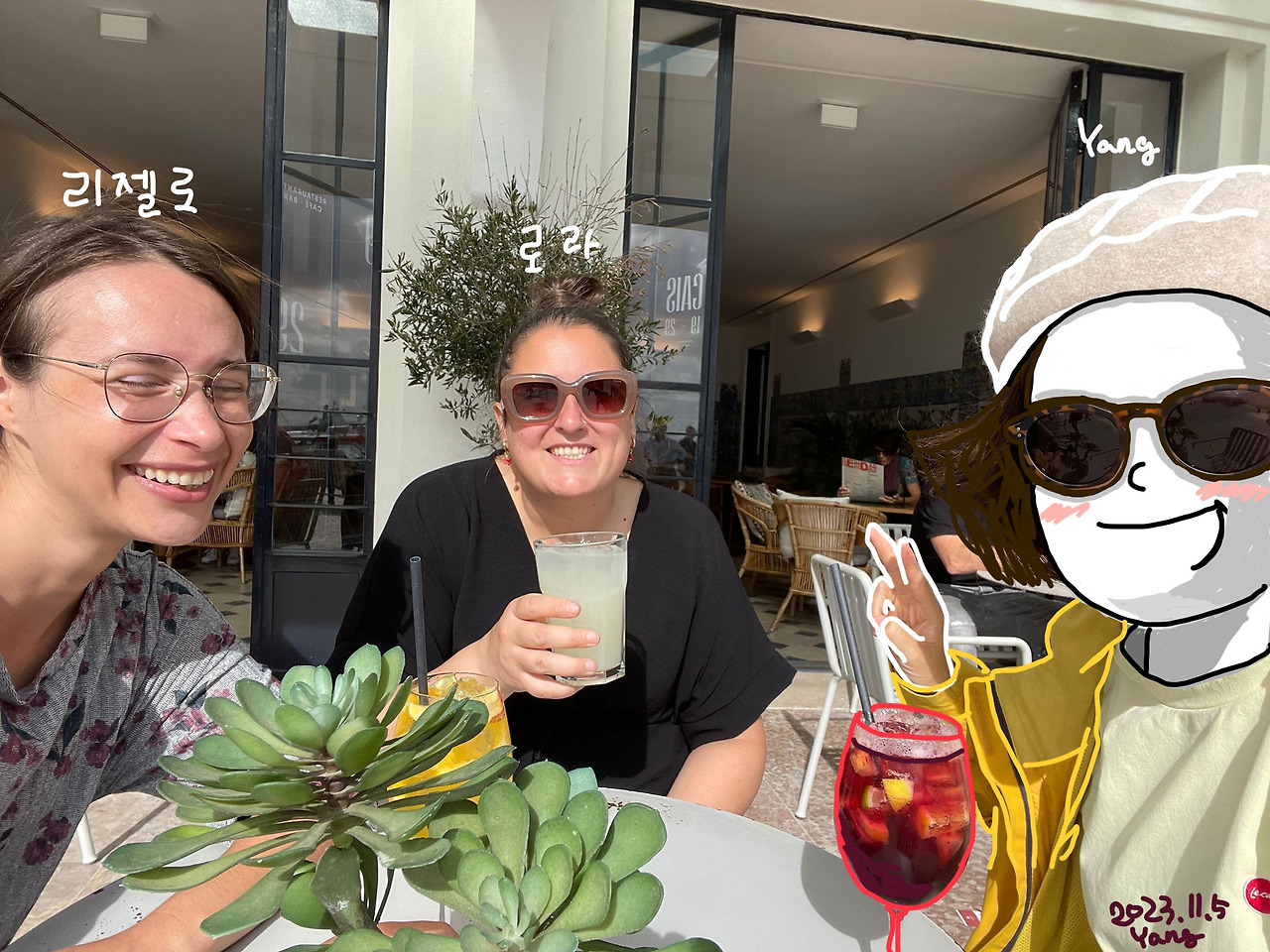 나는 상그리아를, 리젤로(Liselore)는 리스본 특산품인 화이트 상그리아를, 그리고 로라는 레모네이드를 주문했다. 더위를 피하며 잠시 쉬어가기엔 안성맞춤이었다.