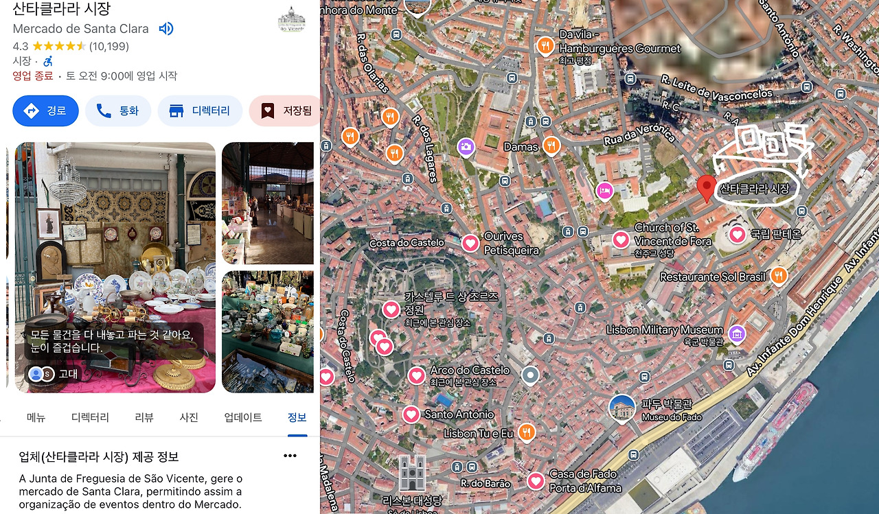 Monumento a Dom Afonso Henriques에는 "Lisbon is blue"라는 문구가 포르투갈 전통 타일로 벽면에 새겨져 있다. 이는 다채로운 리스본의 매력을 한 문장으로 압축한 표현이다. 꼭대기 유적지 내부를 둘러본 후 밖으로 나와 바로 플리마켓을 구경했다.