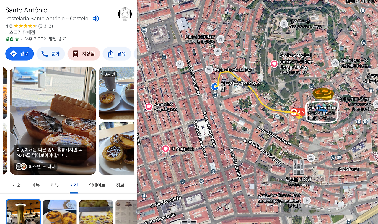 리스본에는 포르투갈 최초의 애그타르트 가게가 있고, 그 맛과 명성은 오랜 시간 여행자들 사이에서 회자되어 왔다고 들었다. 하지만 나에게는 숙소 근처의 작은 빵집, Santo António 베이커리 카페에서 먹은 애그타르트 하나만으로도 그 깊은 맛을 충분히 느낄 수 있었다.