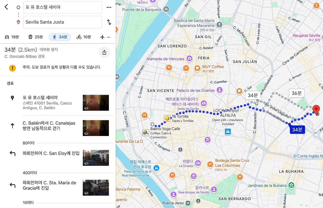 버스터미널로 세비야에 들어왔던 경로가 아닌 세비야 기차역을 향해, 아침 동이 트는 것을 보며 순례자 배낭을 매고 걷기 시작했다.