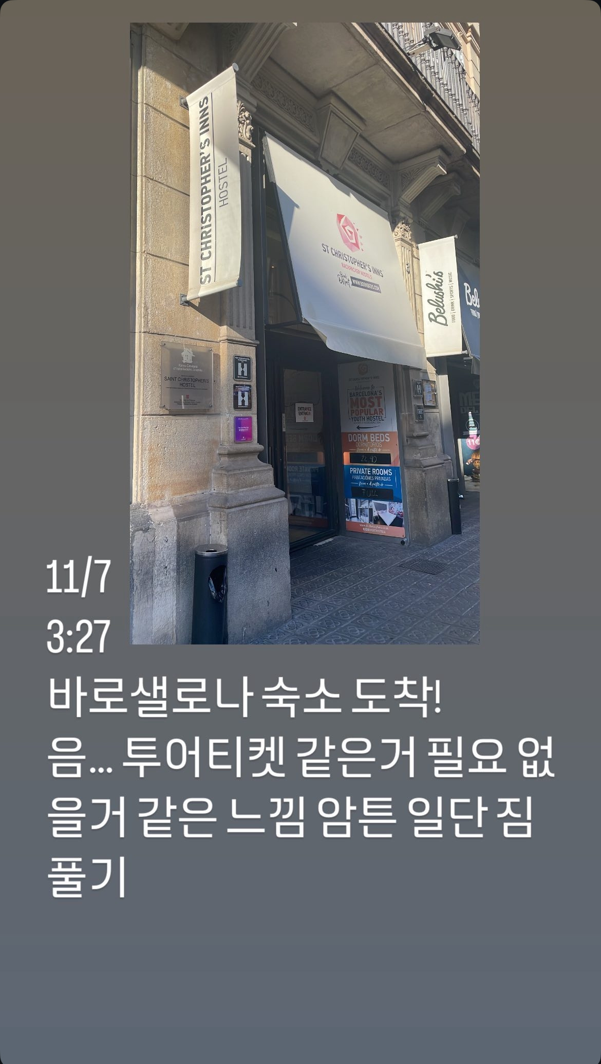 엘리베이터를 타고 409호로 들어가 문 바로 앞칸 1층 벙커 침대를 받았다. 남녀 혼숙이긴 했지만 커튼이 쳐져 있어서 상관없는 분위기였다. 나는 짐을 정리하고 이제부터 바로셀로나 관광을 즐기려고 한다.