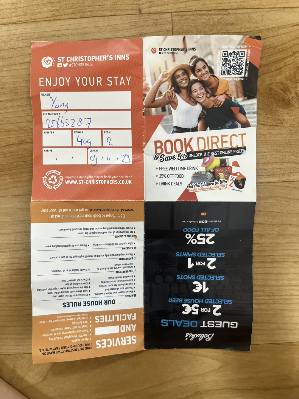도착하자 마자 프론트로 가서 체크인을 했다. 역시나 도시세로 보증금 5유로를 받고 퇴실때 5유로를 돌려준다고 한다. 입구에서 부터 너무 사람이 많고 공유공간에서 여러 클래스와 무료 투어 프로그램들이 있다는 게시판 안내로 꽉 채워져 있다.