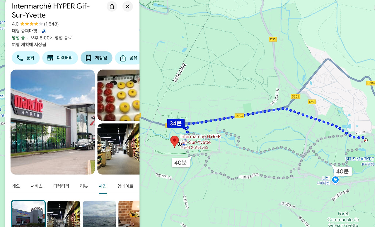 그러다 문득, 지난 9월 순례길 출발 전, 언니네 가족들과 함께 외식을 했던 중식 뷔페가 있는 Intermarché Hyper Gif-sur-Yvette 근처가 떠올라 그쪽으로 향했다.