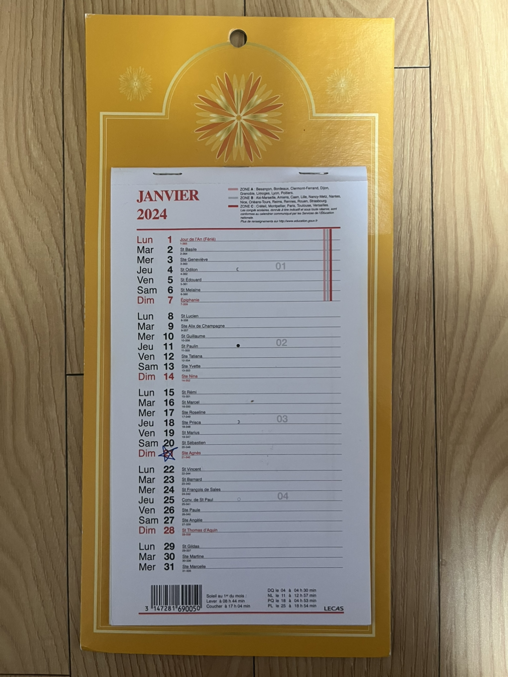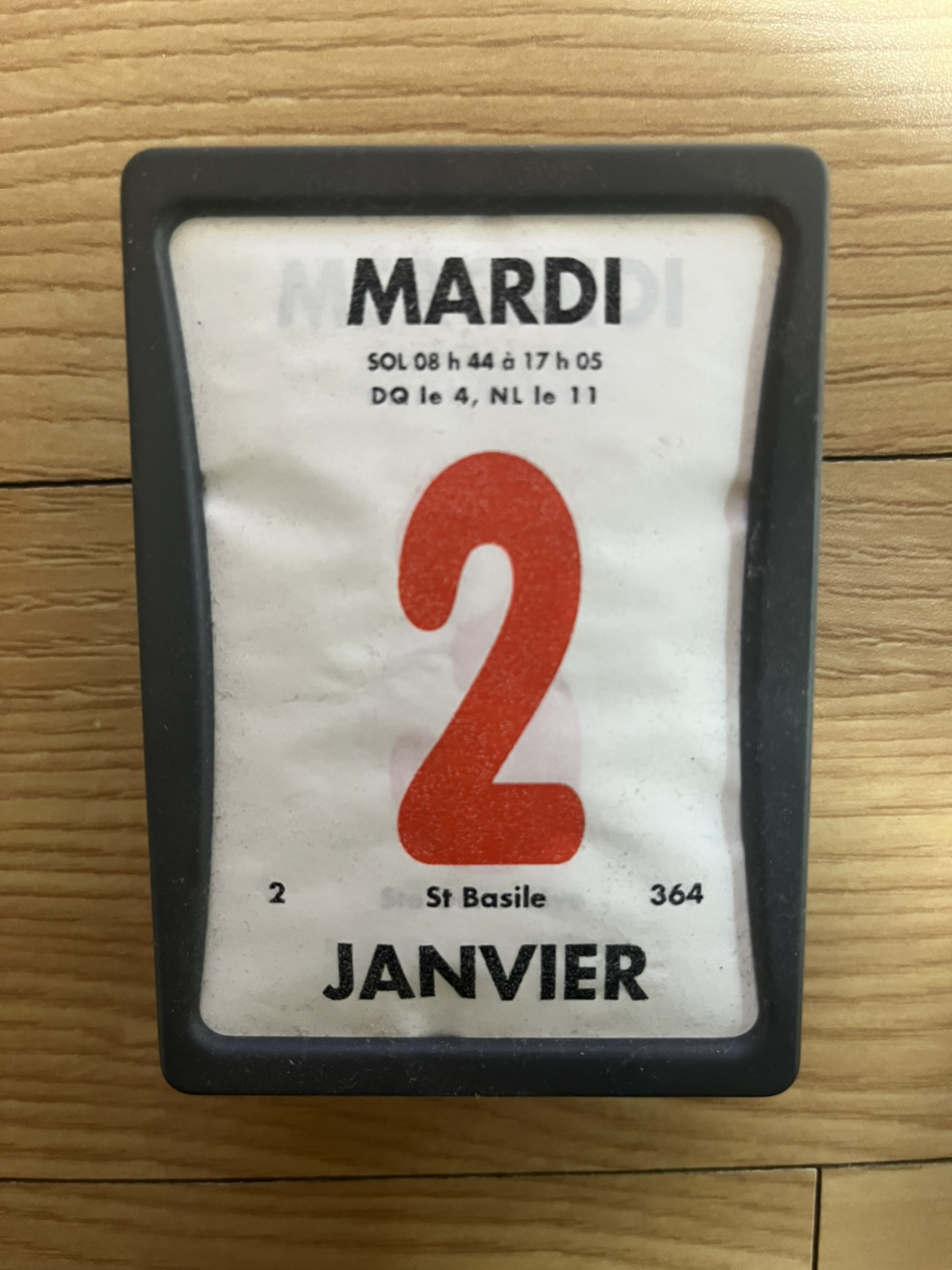 나는 프랑스어로 쓰여 있는 월력 달력과,
