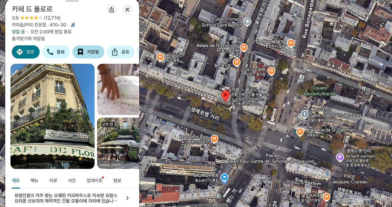조금만 걸으면 **카페 드 플로르(Café de Flore)**도 있는 메인 스팟이다.