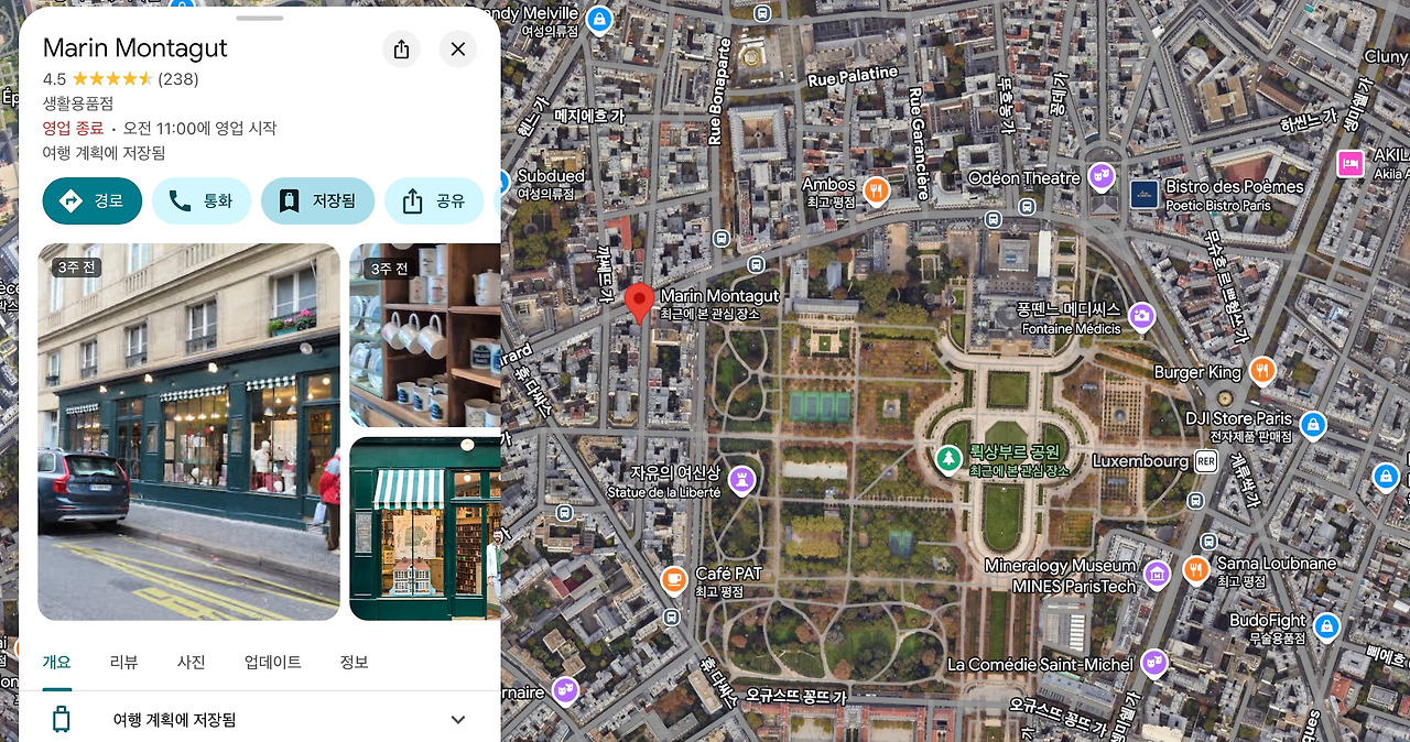 뤽상부르 지하철역에서 내려 공원을 가로질러 뒤편으로 걸어 나오면 바로 닿는 곳이었다.