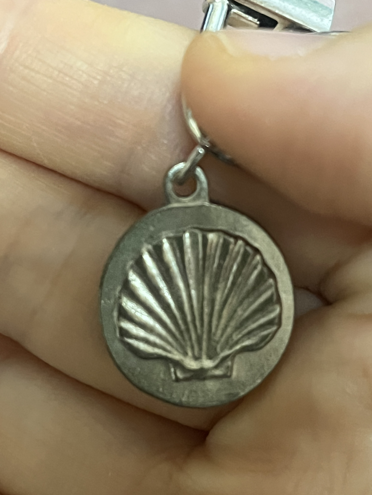 그곳에서 앞부분은 순례자동상과 뒷부분 조개 문양이 새겨진 펜던트를 발견했다.