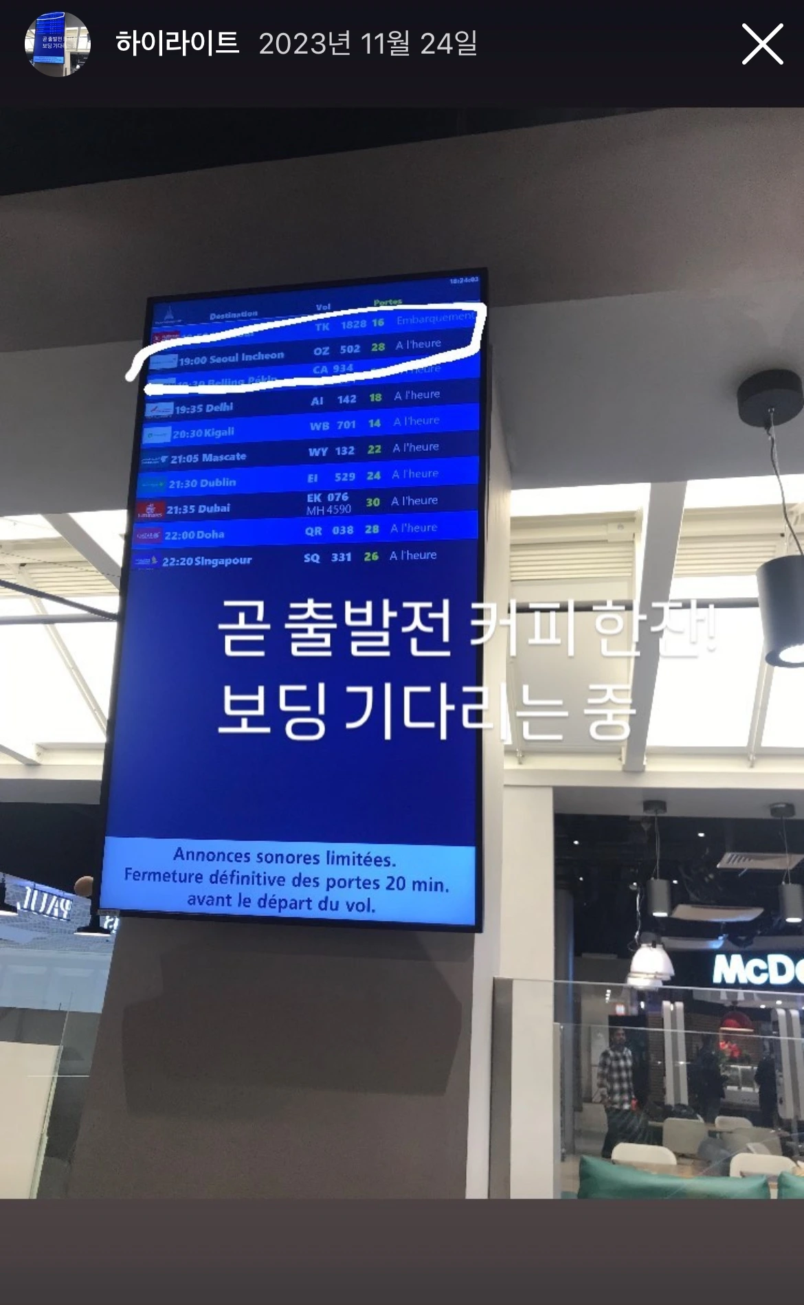 공항에 미리 도착해 마지막으로 Paul 커피숍에 앉아 커피 한 잔을 마시며 체크인 시간을 기다렸다.