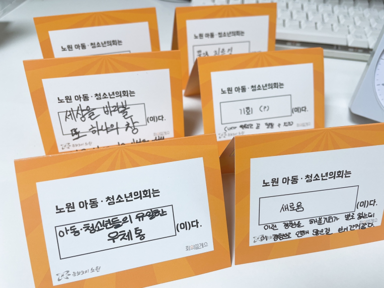 나는 노원구 아동·청소년 참여기구를 3년째 운영하고 있다. 최근 올해 활동이 끝나면서 한 아이에게 소감을 물었다. 그는 “노원 아동·청소년 의회는 아동청소년의 유일한 우체통이에요”라고 답했다. 자신들의 의견을 전달할 수 있는 소중한 통로로서의 의미를 담고 있는 표현이었다. 그는 과거에는 어른들이 모든 결정을 내리고 자신들은 그저 가르침을 받는 존재였는데, 이제는 성인과 비슷한 입장에서 의견을 내고, 어른들이 그 의견을 경청하고 반영하려는 태도가 인상적이었으며 '행복했다'라고 말했다. 자신의 의견이 존중받는 경험은 아이들에게 무척이나 신선하고 의미 있었던 모양이다.