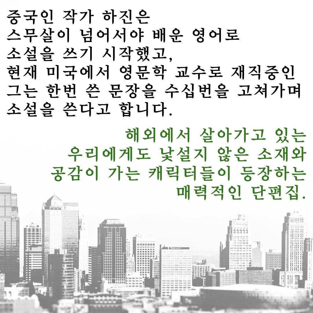 미국에서 작품활동을 하고 영문과 교수로 재직중인 중국인 하진 작가는 다음과 같은 말을 했습니다.