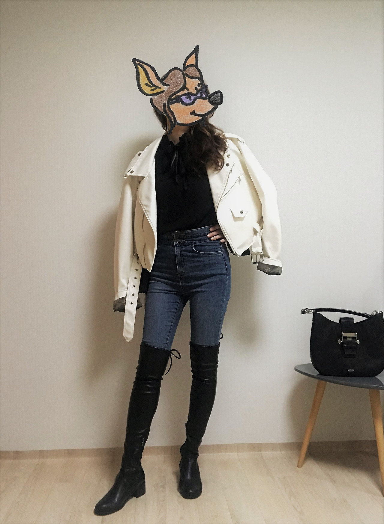 위의 촬영한 컷이 그 결과물이다. 사실 가장 처음에 올린 러스트 컬러 가죽 재킷 포스팅에서 그 재킷 안에 받쳐 입은 상의도 바로 이 블라우스였다. 평소에 편하게 입던 청바지나 미니스커트에 같이 입으면 단번에 드레스 업한 느낌을 연출할 수 있고 정장 바지에 재킷을 걸치면 오피스룩도 가능하다.