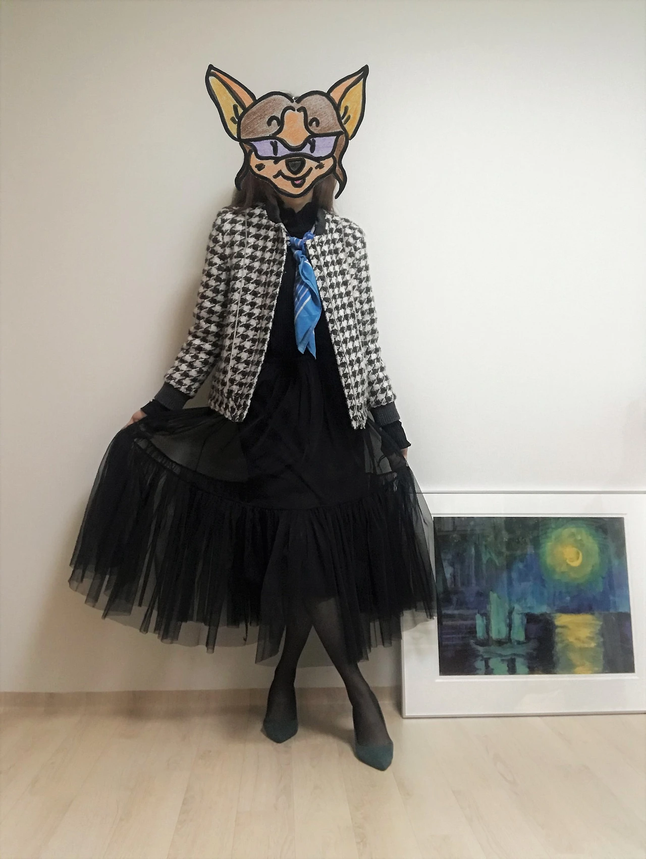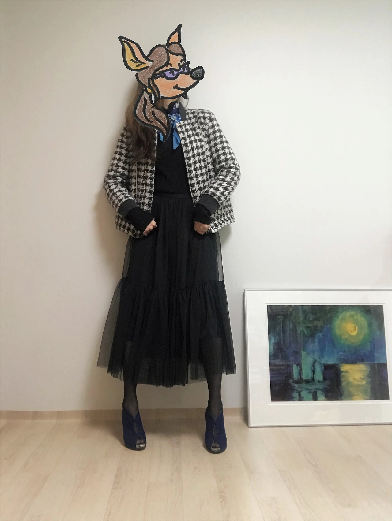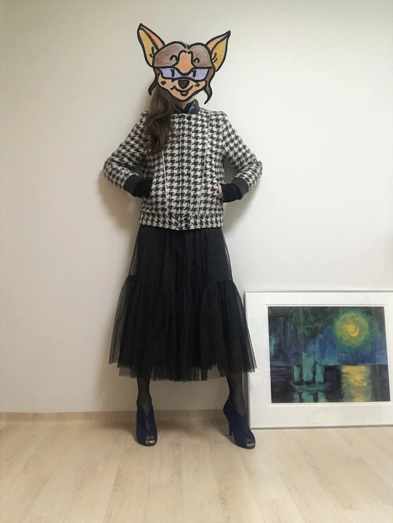 결국 한껏 차려입은 듯한 분위기를 적절히 쿨 다운 할 수 있는 할 수 있는 아이템만 있으면 얼마든지 일상생활에서도 튤 스커트를 즐겨 입을 수 있다는 얘기다. (그렇구나, 이 공주풍의 옷을 부끄러워하지 않고 입을 방법이 있구나!) 튤 스커트의 확장성은 의외로 무한했고, 웹에서 관련 이미지들을 검색하다 보니 내 서랍에서 당장 꺼내 입을 만한 아이템이 생각났다. 아가일 패턴이나 체크 패턴이 들어간 클래식한 스웨터, 맨투맨 티셔츠, 그래픽 티셔츠 등등이었다. 그래서 가장 기본이 되는 블랙 & 화이트 무채색 튤 스커트와 어울리는 스타일링 두 가지를 시도해보았다.